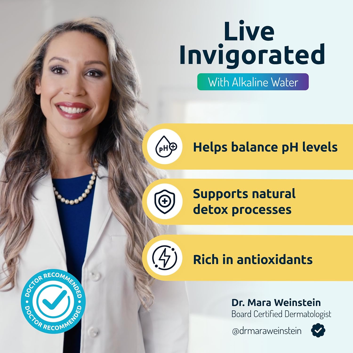 Invigorated Water - Alkaline Countertop Water Filter Dispenser, Large 52-Cup Capacity, Mineralized Alkaline Water, BPA-Free, 96 Gallons/Filter (White, 3 Filters Included)