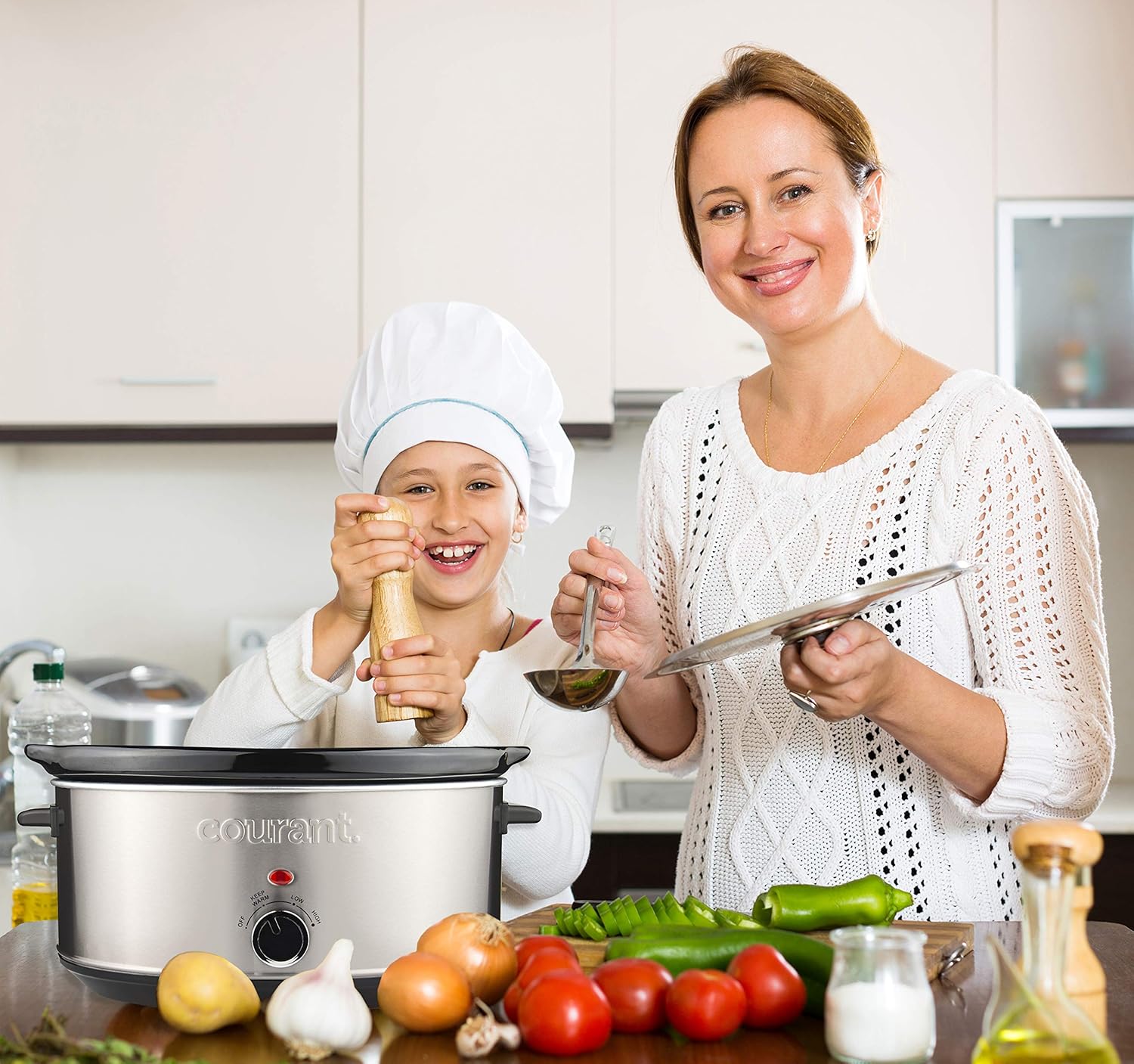 - Courant 7.0 quart capacity Crock slow cooker: Whip up savory dishes anytime, using basic ingredients available on hand! Our great series of slow cookers is designed to turn “simple input into delicious output”! No more hassling with time limitations! Recipes included!!