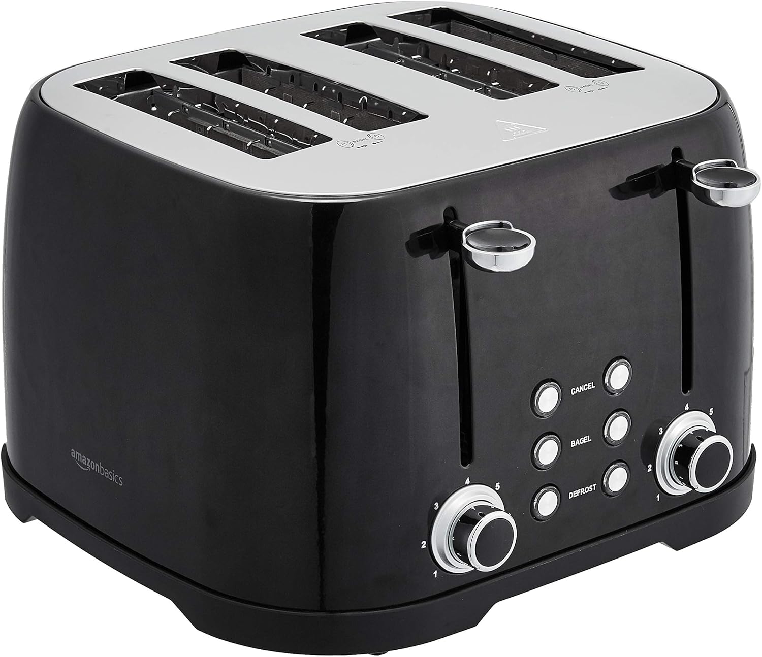 Amazon Basics 4 Slice Toaster, 6 Browning Settings, Removable Crumb Tray, Bagel and Defrost Function, Cancel Button, 1600W, Black