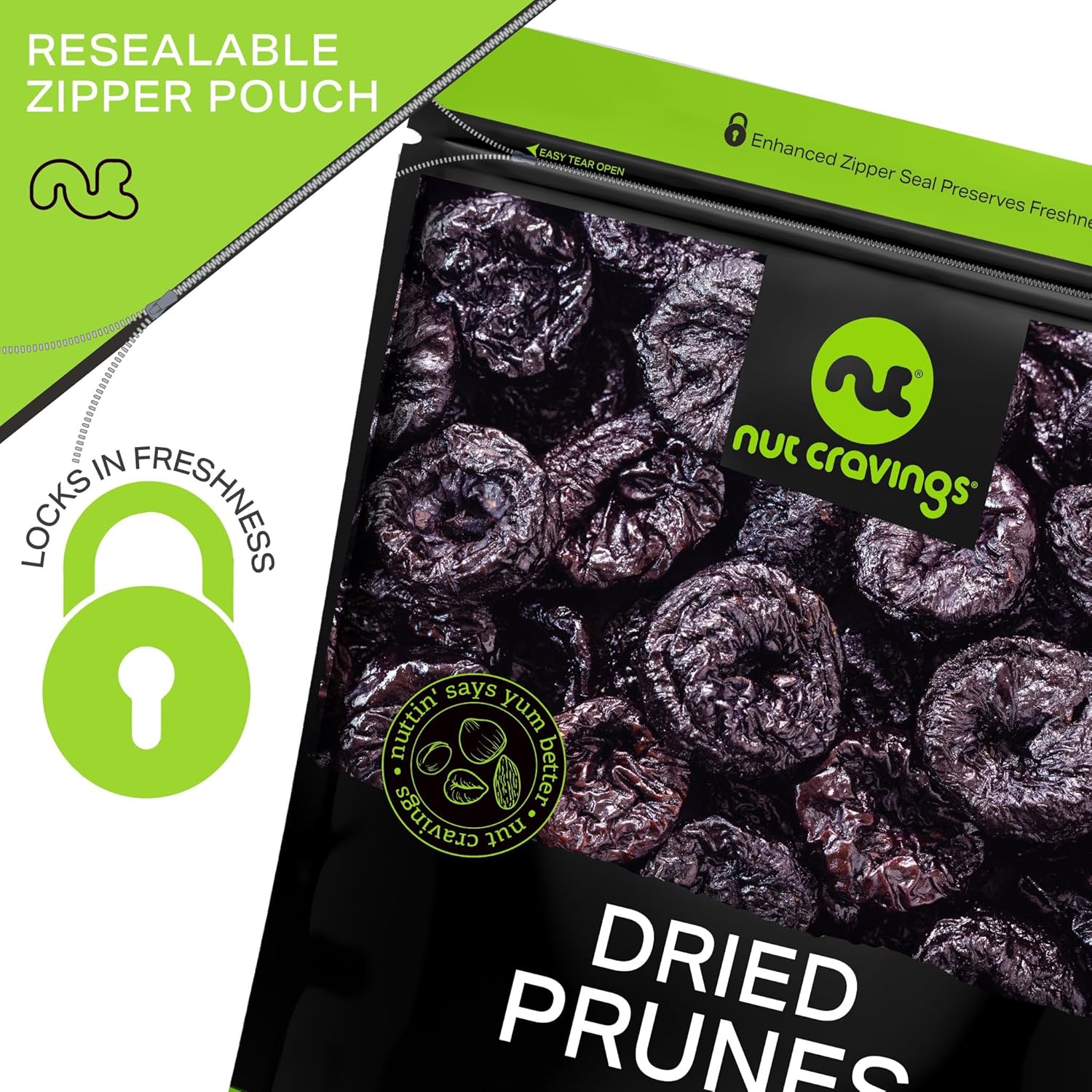 NUT CRAVINGS - Dried Prunes Pitted Unsweetened, Dry Plums No Sugar Added (32oz, 2 LB) Bulk Dry Fruits Packed Fresh in Resealable Bag - Sweet Healthy Snack, Naturally Grown, Vegan, Kosher