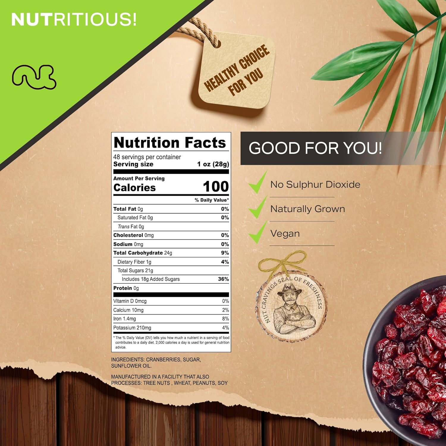 NUT CRAVINGS - Sun Dried Whole Cranberries, Lightly Sweetened (48oz, 3 LB) Bulk Dry Fruits Packed Fresh in Resealable Bag - Sweet Healthy Snack, Naturally Grown, Vegan, Kosher