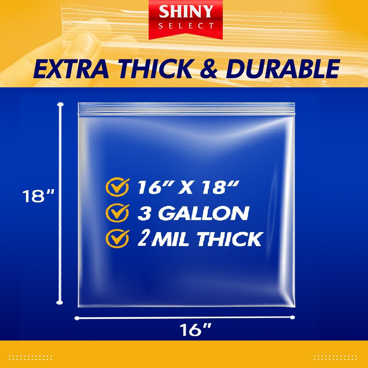- HIGH-QUALITY, SPACIOUS STORAGE BAGS: Large and durable, measures 16" wide x 18" tall, our 2 Mil. thick plastic bags will keep your food fresh and your belongings safe and secure. They’re clear so you can easily see the contents inside, and include a resealable closure for easy sealing and protecting the items inside.