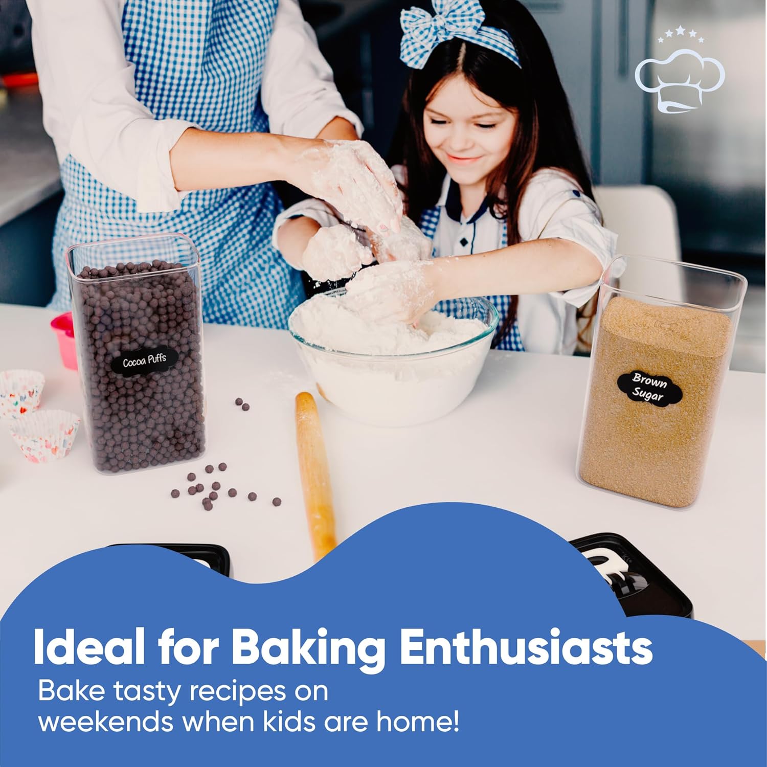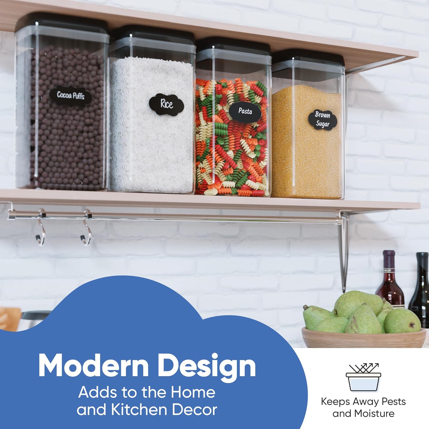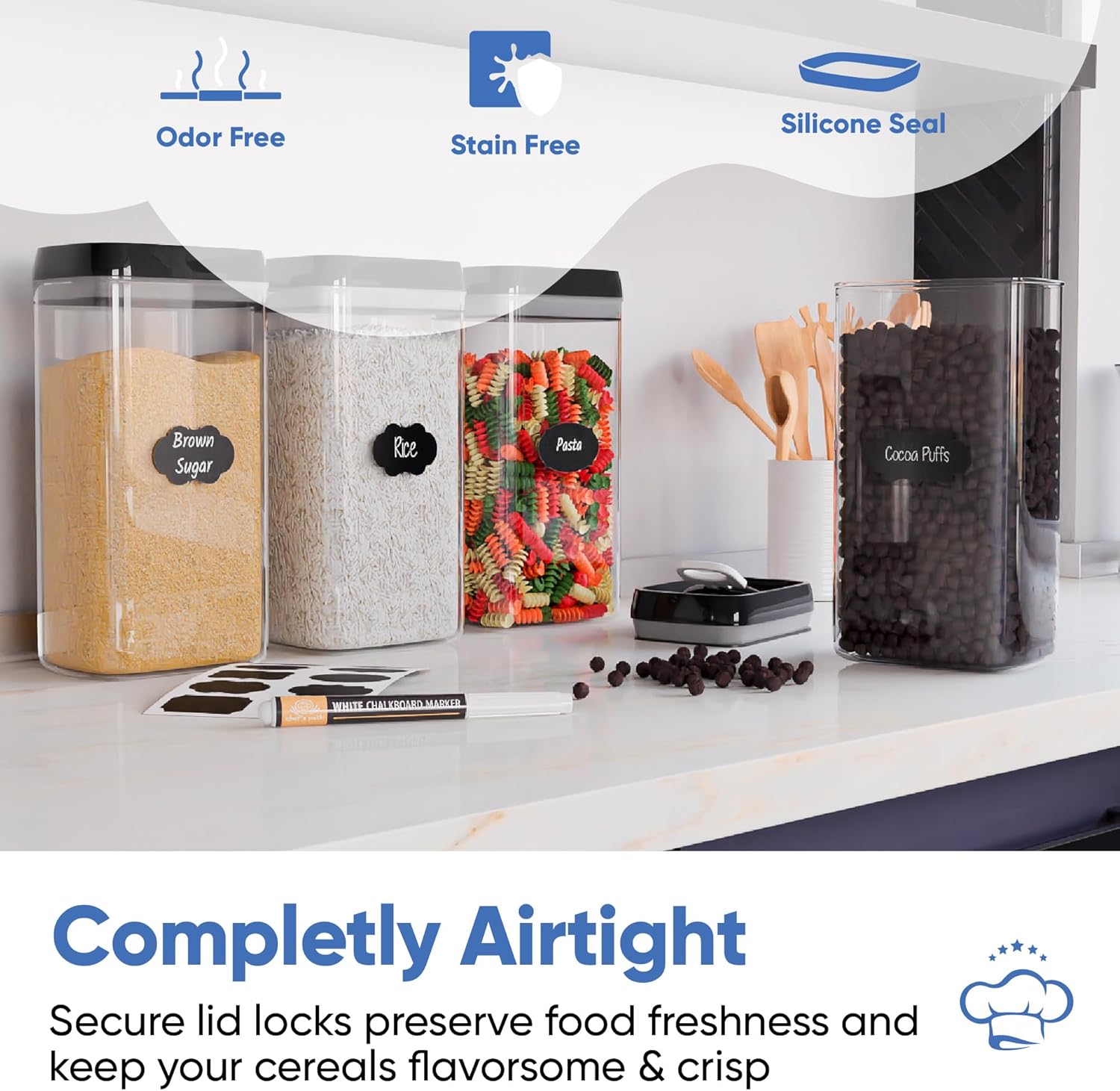 Chef's Path Airtight Food Storage Boxes with Labels - Kitchen Storage - Flour, Cereal, Pasta - Plastic Storage Boxes with Lids (4pcs-3.2L)
