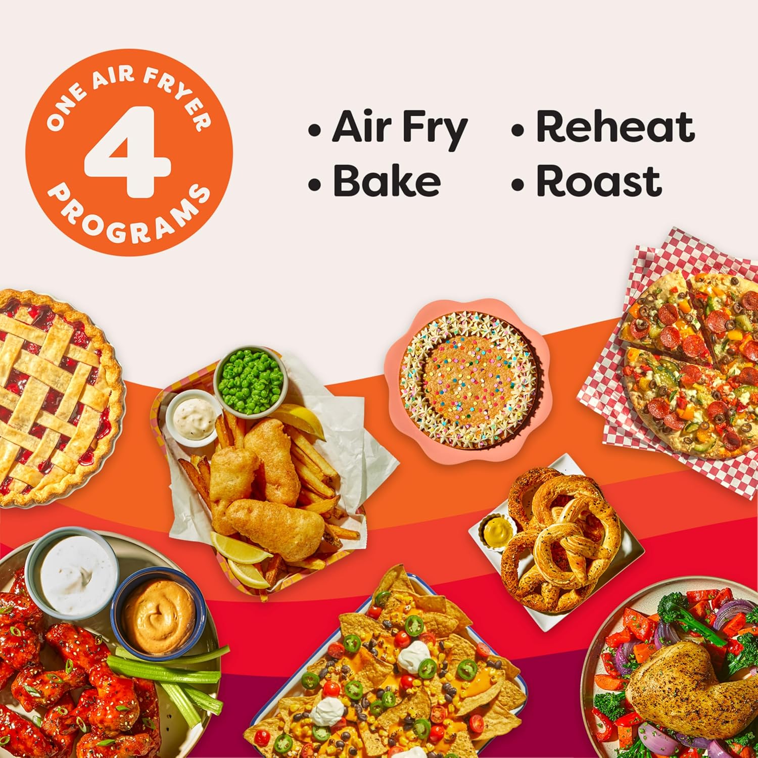- 4 Cooking Functions: Air fry, bake, roast, or reheat with little to no preheating time, all in one easy appliance