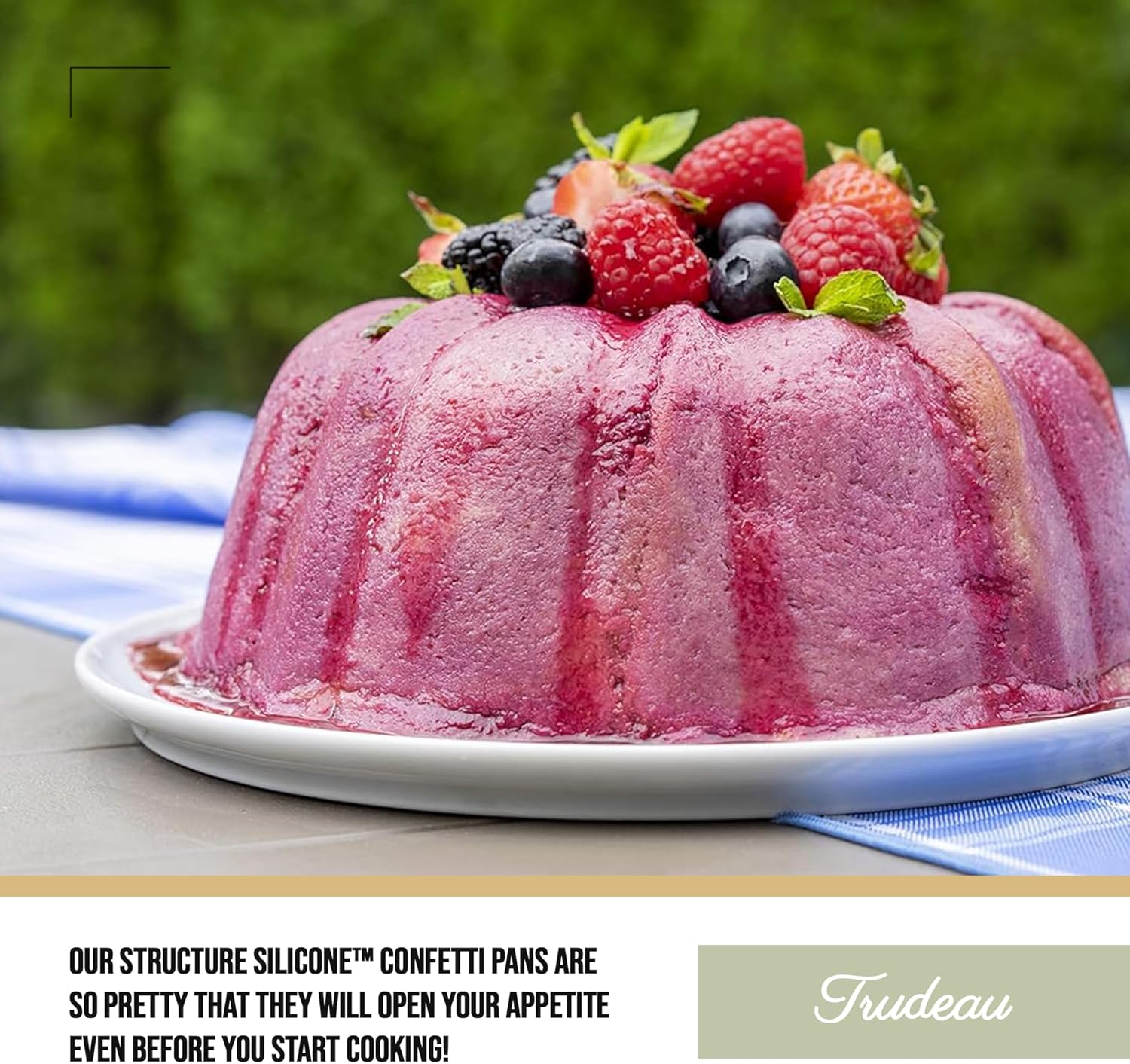 Trudeau 5118558 Structure Fluted Cake Pan Silicone Bakeware, Medium, Confetti White