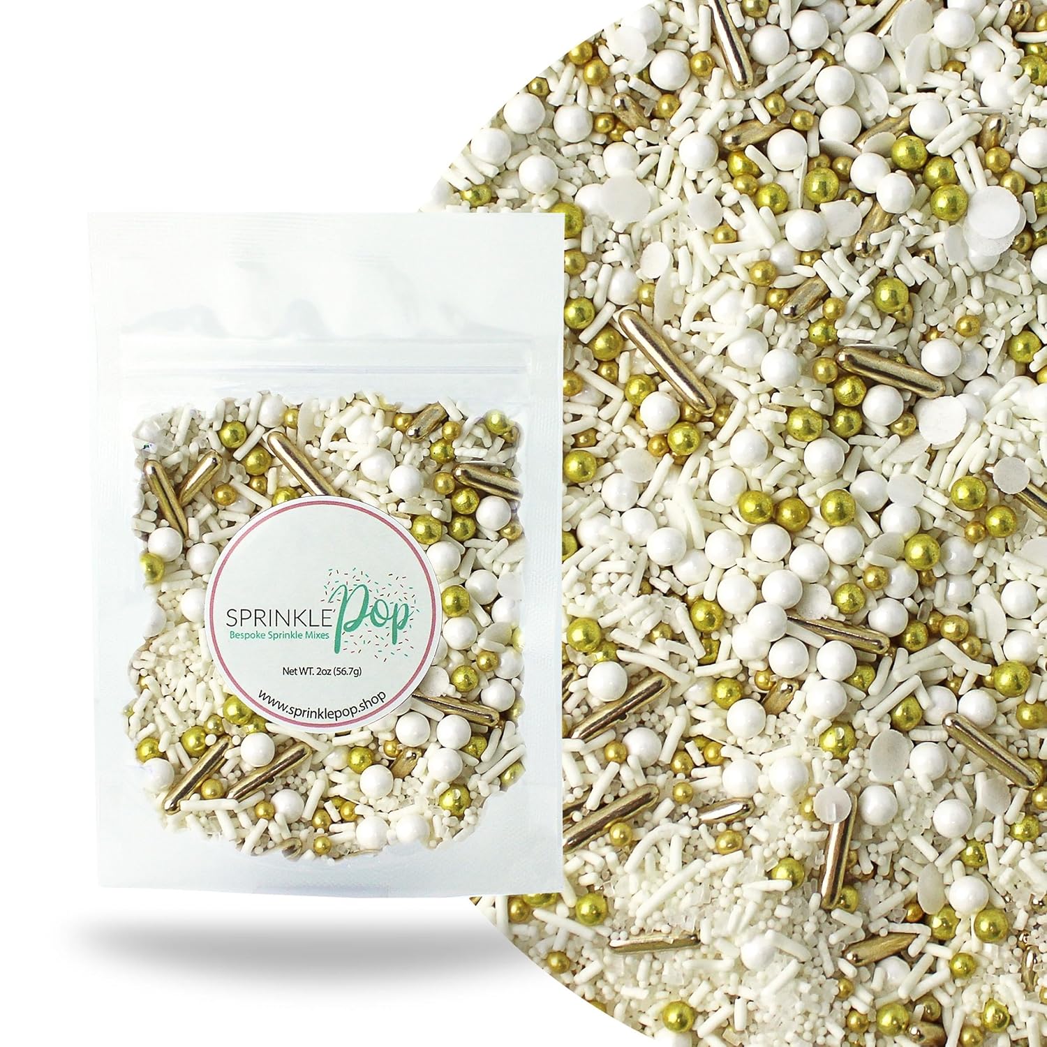 Wedding White Sprinkle Mix| Made In USA By Sprinkle Pop| Pastel White Sprinkles With Gold Metallics Dragees| Sprinkles For Decorating Bridal Shower Wedding Anniversary Party Cupcakes Cake Cookies, 2oz