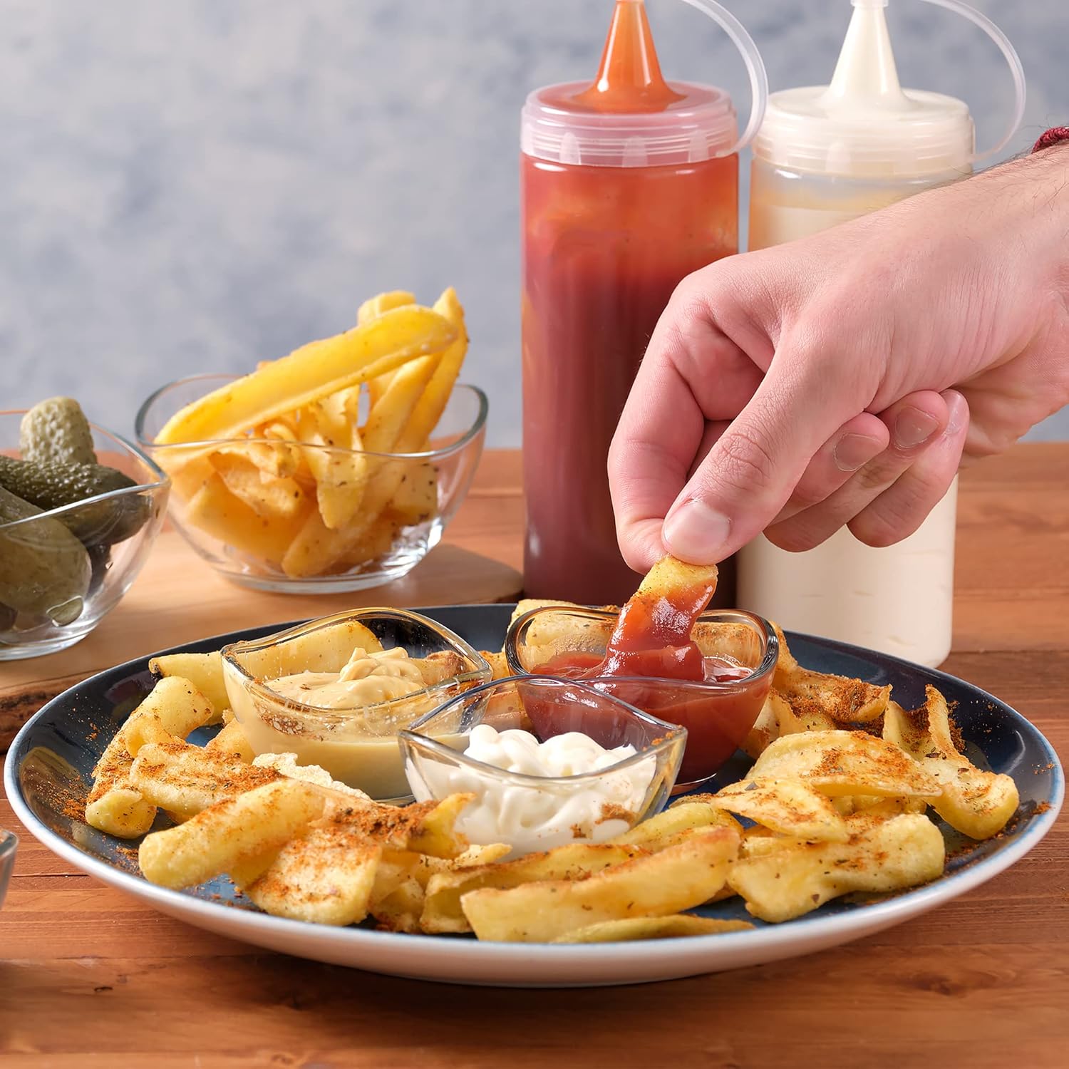 - Special Design: This clear sauce bowls tackles kitchen prep and tableside serving with clarity, practicality and, above all, stylish simplicity. Its clear design allows you to see exactly what you put into each bowl, avoiding confusion. Each mini bowl fits into your palm for convenient usage. Capacity: 2 ยผ ounce, Height: 1.6 inches, Mouth Diameter: 2.75 Inch