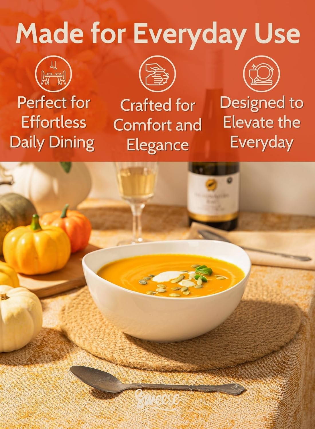 - A Canvas for Culinary Versatility- The Sweese 42oz large porcelain serving bowls are suitable for soups, salads, popcorn, pasta, mixed fruits and other dishes in daily to meet your daily demand. These serving bowls are versatile enough to fit any and all occasions. It's easy to handle, making serving a breeze.