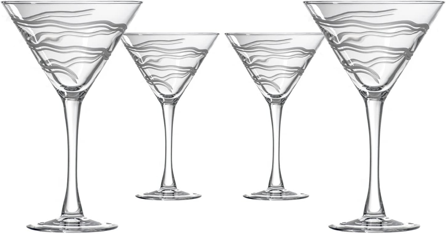 Rolf Glass Good Vibrations Martini Glass | Set of 4 Stemmed 10oz Martini Glasses | Lead-Free Crystal Glass | Diamond-Wheel Engraved | Made in the USA | Etched Spiral Design