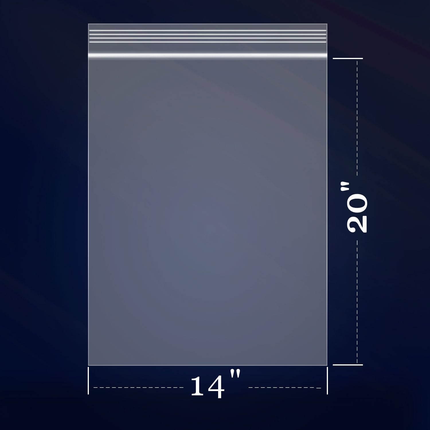 - [Specifications] -500 Count 14" x 20" Usable Dimension (excludes the zipper), 2.0 Mil Thickness Reclosable Zip Poly Bags.We have various sizes for you to choose from.