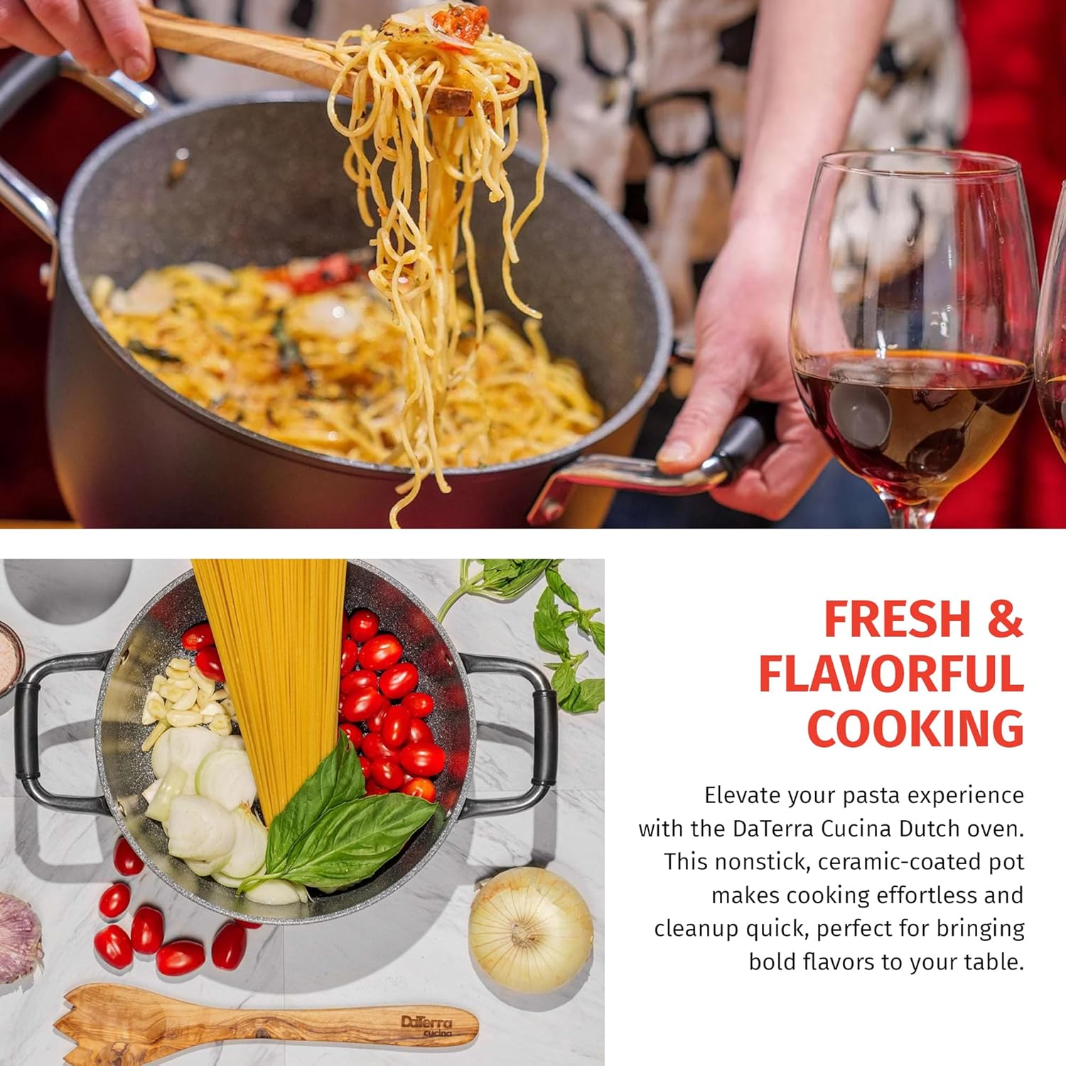 - PREMIUM COOKWARE FOR EVERY KITCHEN: The DaTerra Cucina 5 Qt Nonstick Ceramic Dutch Oven with Lid is perfect for soups, pasta, and stews. With an aluminum core for optimal heat distribution, your food cooks evenly every time. DaTerra Cucina’s nonstick ceramic coating allows for healthier cooking with minimal oil use.