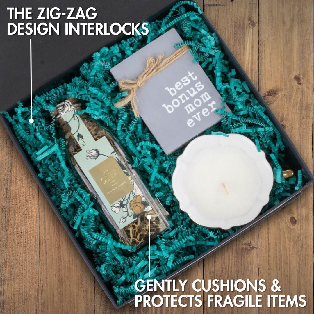 - VERSATILE GIFT WRAPPING & PACKAGING: Our 2 LB Teal crinkle paper filler is perfect for creating eye-catching displays in gift bags, gift boxes, and baskets. Fill those extra spaces with premium Teal filler paper, ensuring your gifts stand out at any event.