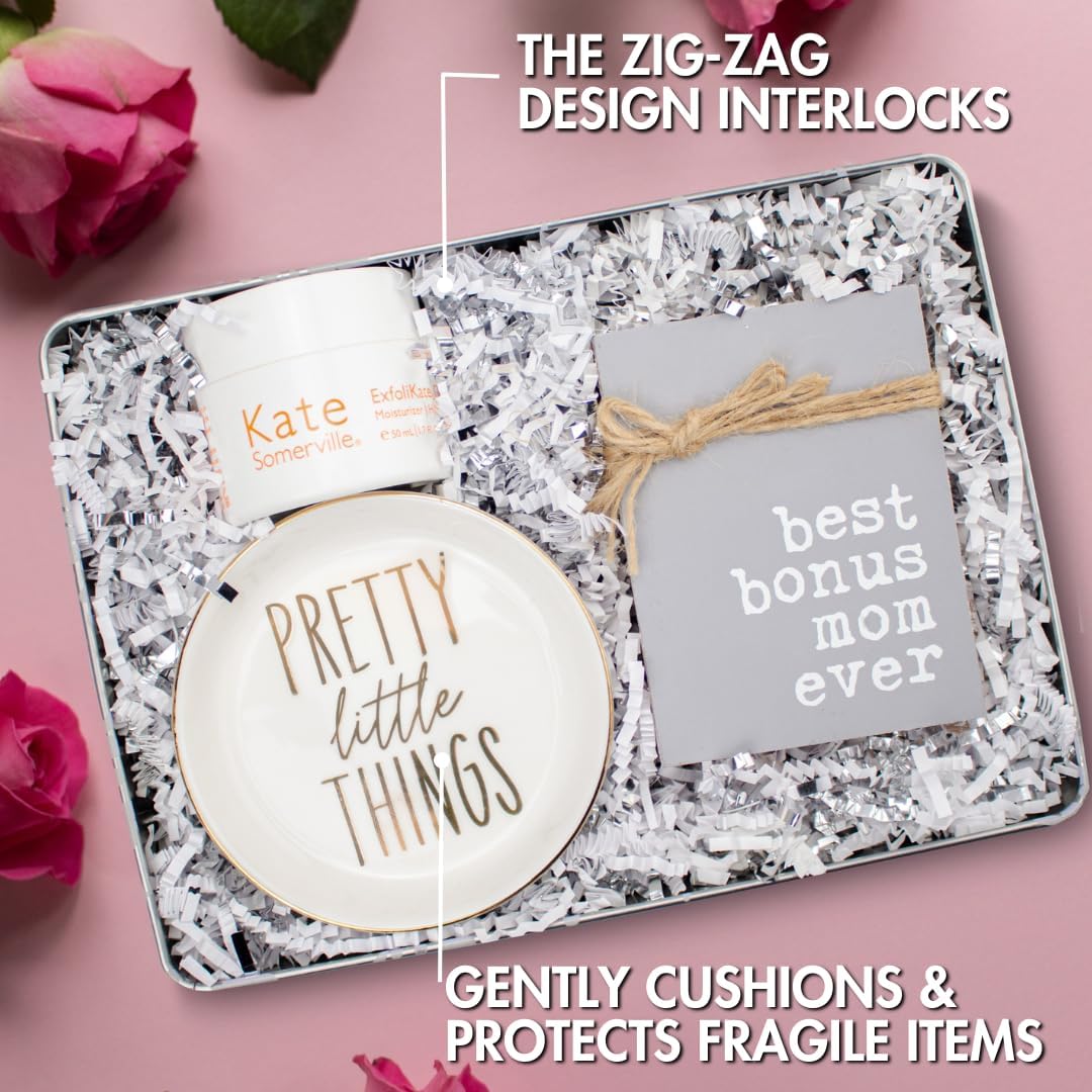 - PERFECT FOR EVERY OCCASION: Whether it's a birthday, wedding, anniversary, Halloween, or bridesmaid gifts, this White & Silver crinkle paper filler adds the perfect touch to your gifts, baskets, or boxes. Create memorable presentations with ease.