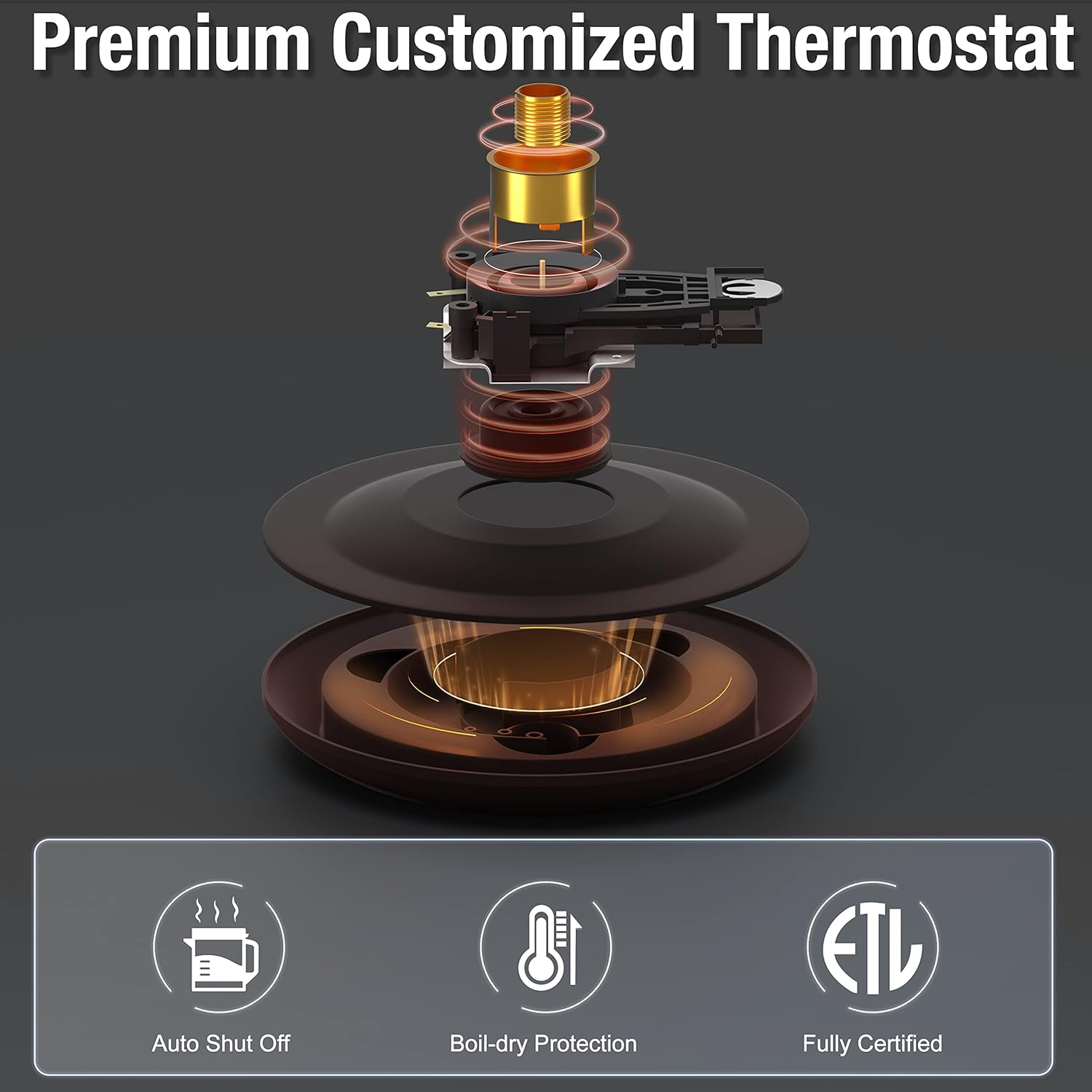 - Effective Operation β Equipped with the boil-dry protection and auto-shutoff safety function, the kettle will turn off automatically once the water completely boiled so that it effectively saves more energy and time than your microwave or stove. The 2L big capacity can handle around 7 cups and enough for you to prefer a full day of coffee, tea, hot chocolate at a time.