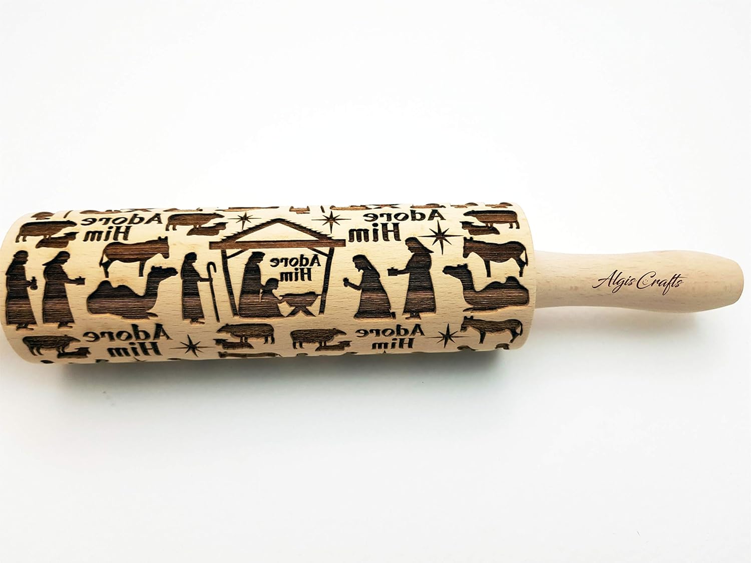 NATIVITY EMBOSSING ROLLING PIN for GINGERBREAD COOKIES for CHRISTMAS