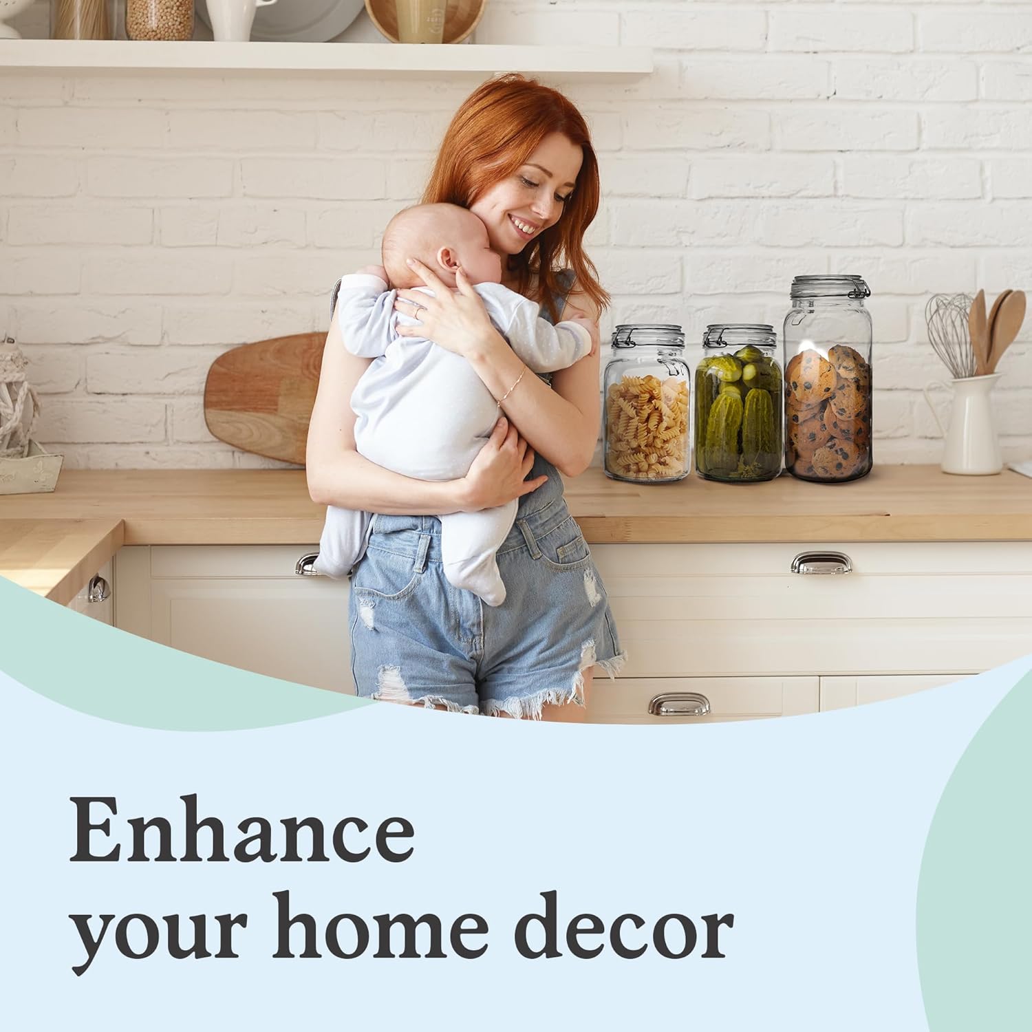 Set of 3 Glass Mason Jar 64 Ounces with Airtight Lid Large Jars With Stainless Steel Bail And Trigger Clamps