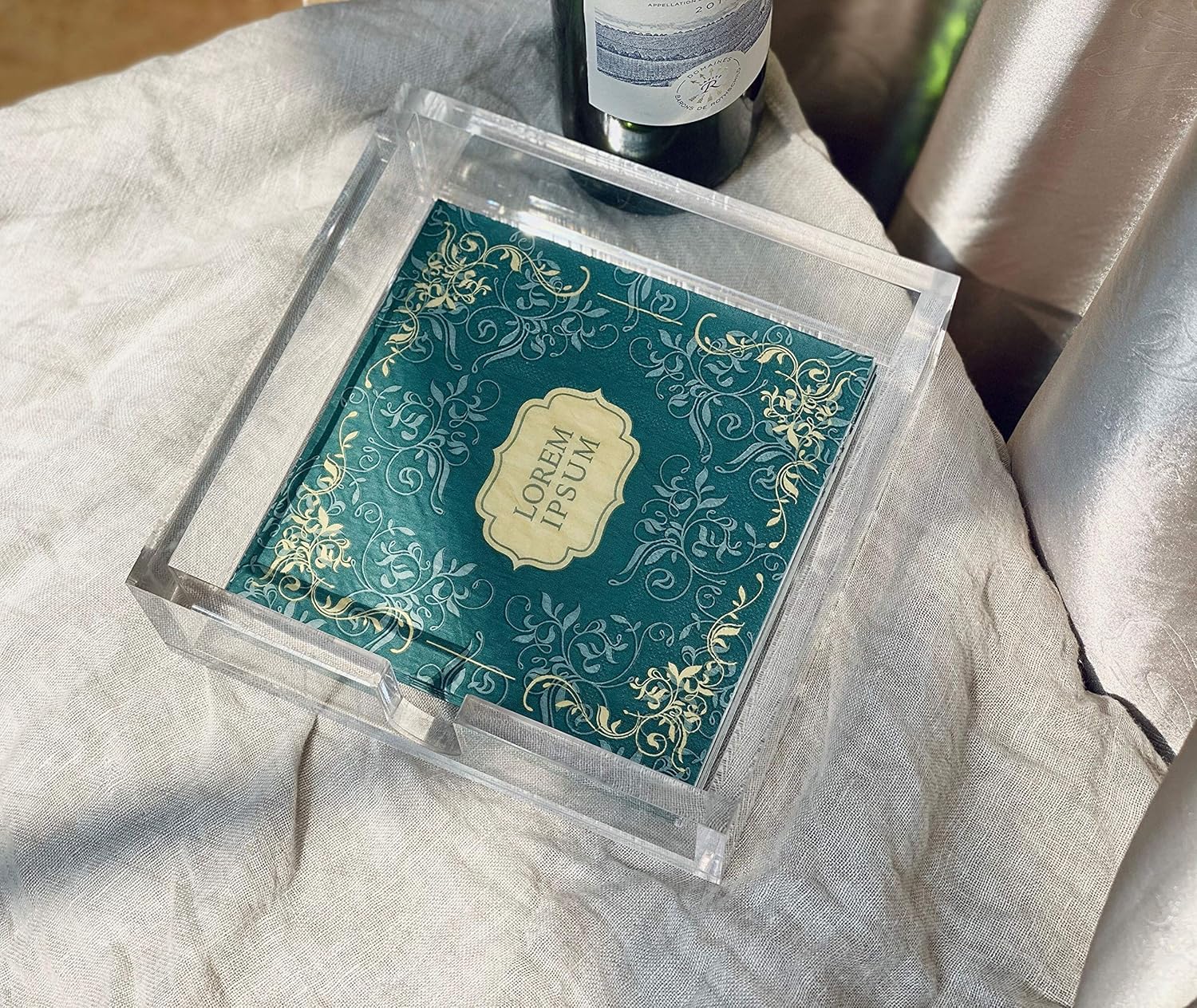 IEEK Acrylic Cocktail Paper Napkin Holder,Decorative Clear Cocktail Napkin Caddy Beverage Napkin holder,Pack of 1