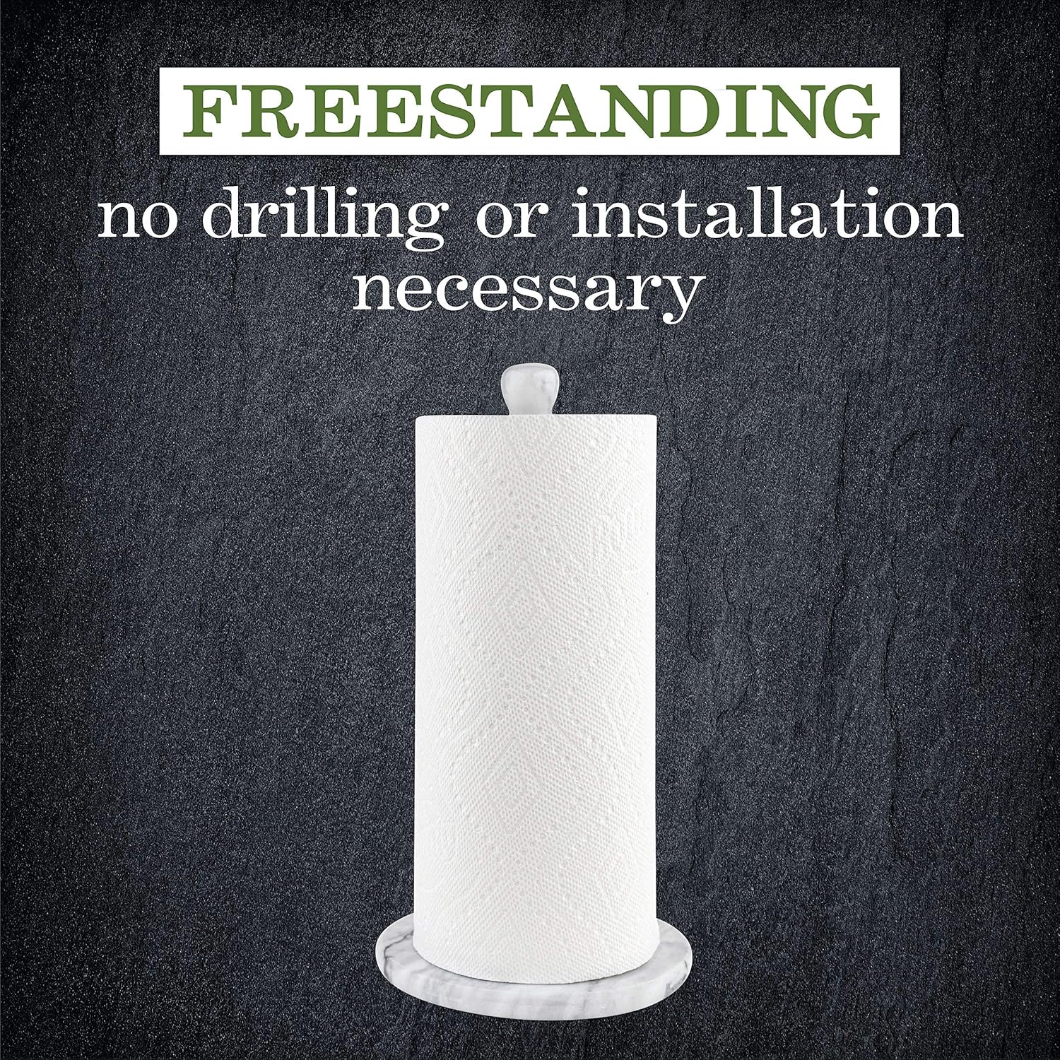 - HEAVY-WEIGHT- The natural heavy marble stone ensures that the kitchen towel holder stays steady and does not fall over while you’re taking a towel from the roll. This increases the stability of the holder and keeps it steady during use.