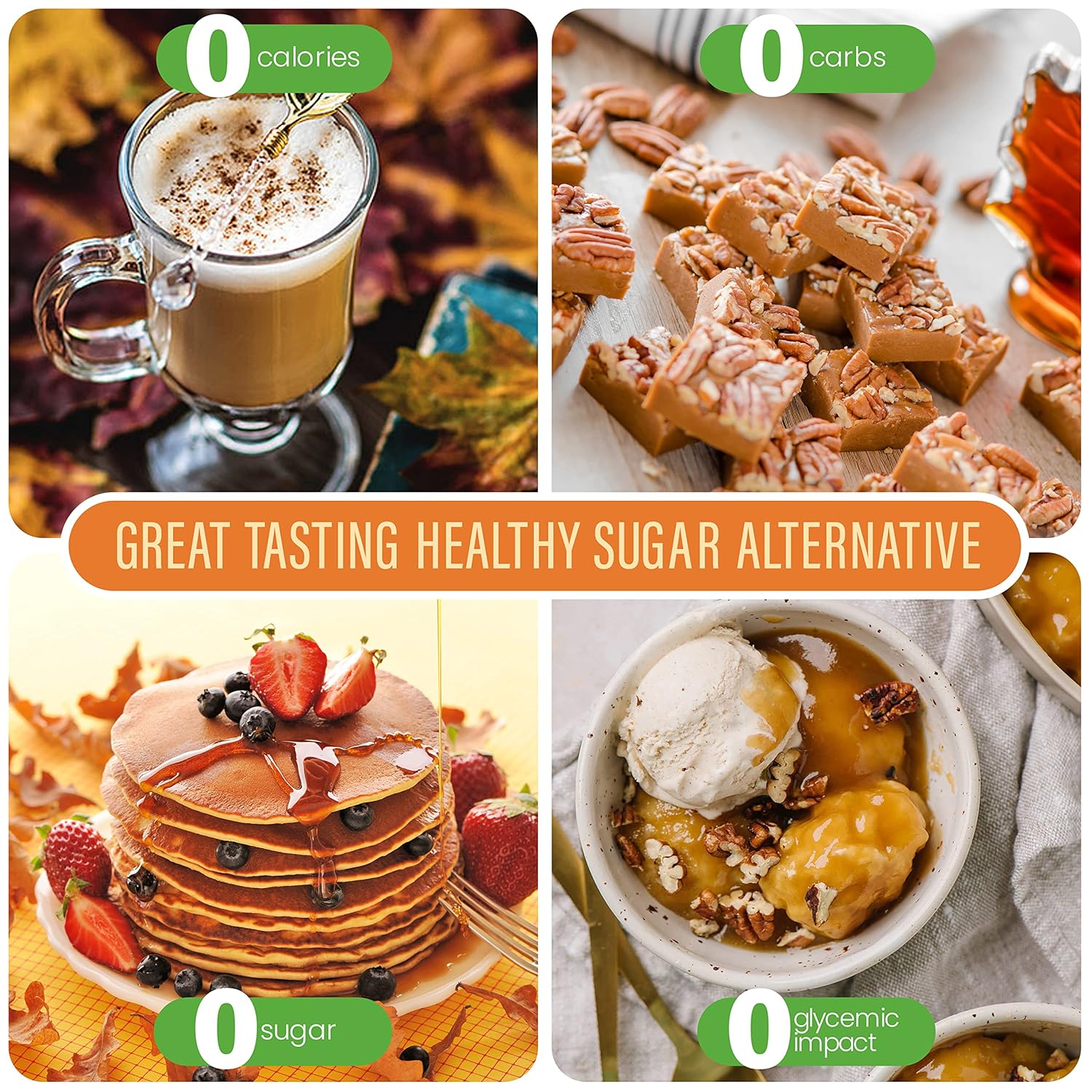 - β€οΈ PERFECT FOR ALL DIET PLANS - 0 glycemic index, 0 calories, 0 carbs, 0 fat, 0 sugar, & no impact on blood sugar level means even with the keto diet our liquid no calorie stevia is safe. Enjoy the yummy maple flavoring liquid keto sugar free sugar that you can use as a healthy sugar substitute, stevia coffee flavoring, maple syrup keto sweetener & more!