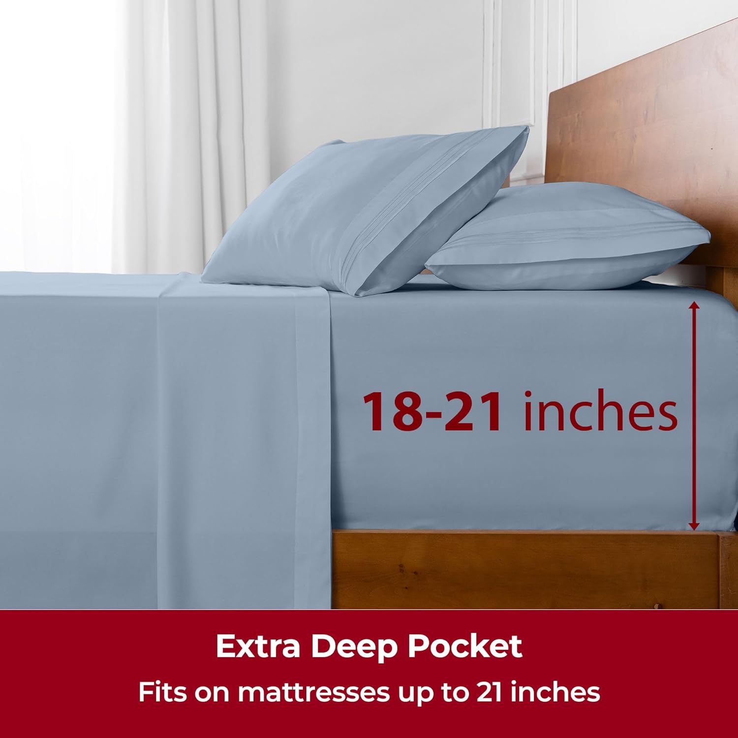 - Perfect Fit & Certified Safe - Deep pockets fit mattresses up to 21" deep, making them ideal for memory foam toppers, air mattresses, and more. A sewn-in elastic band ensures a snug, secure fit. OEKO-TEX(R) STANDARD 100 certified (22.HUS.40891, Hohenstein), tested for over 1,000 harmful substances for your peace of mind.