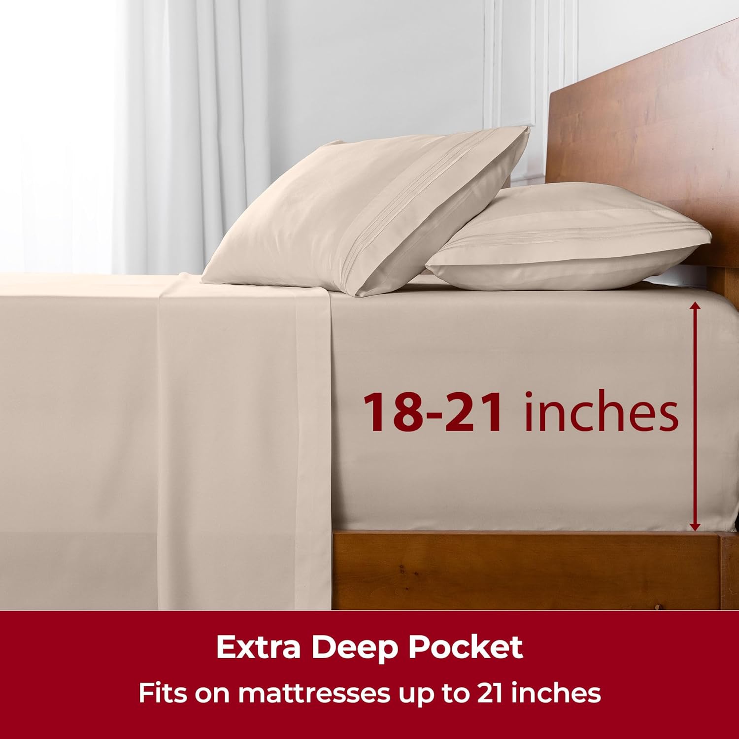 - Perfect Fit & Certified Safe - Deep pockets fit mattresses up to 21" deep, making them ideal for memory foam toppers, air mattresses, and more. A sewn-in elastic band ensures a snug, secure fit. OEKO-TEX(R) STANDARD 100 certified (22.HUS.40891, Hohenstein), tested for over 1,000 harmful substances for your peace of mind.