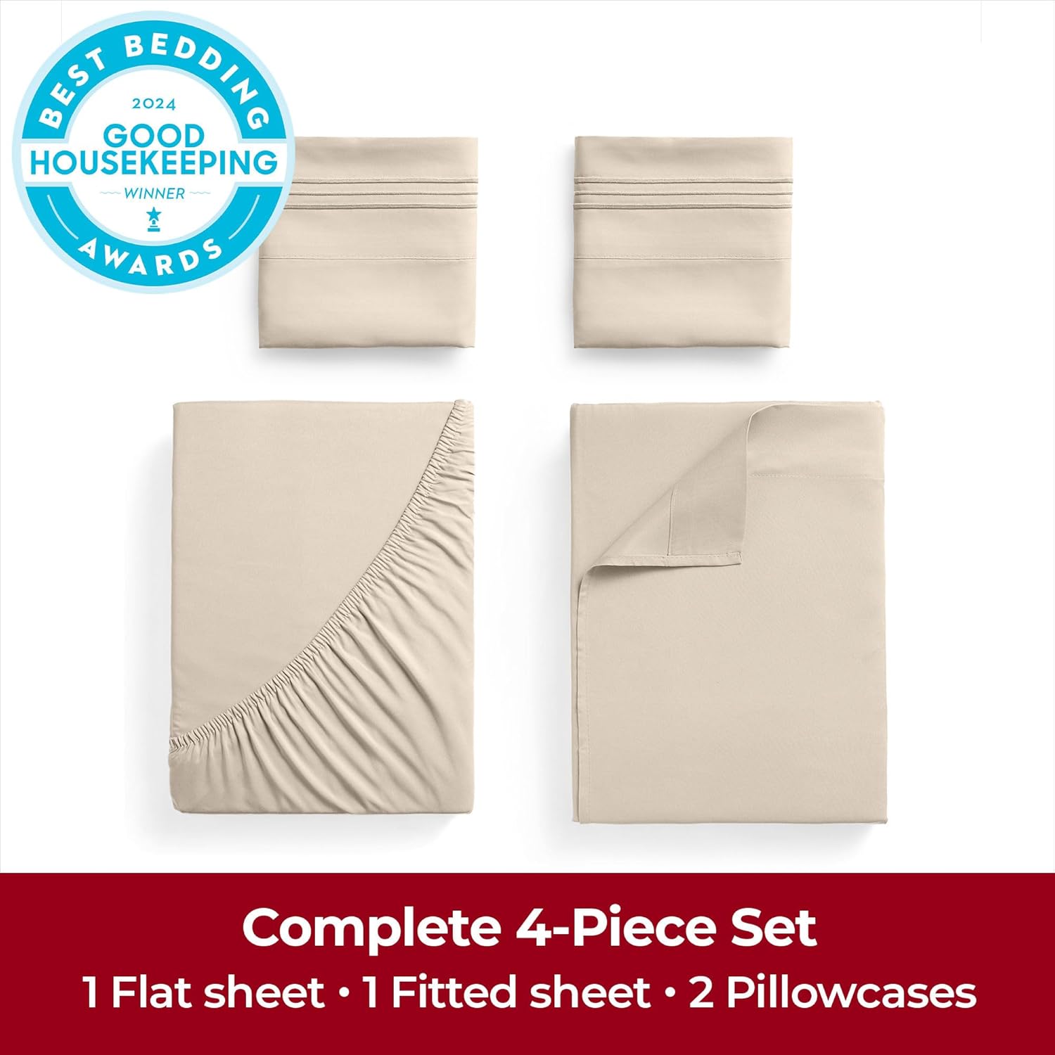 Mellanni Extra Deep California King Sheets - 4 PC Iconic Collection Bedding - Hotel Luxury, Ultra Soft, Cooling Bed Sheets - Wrinkle, Fade, Stain Resistant (Cal King, Beige)
