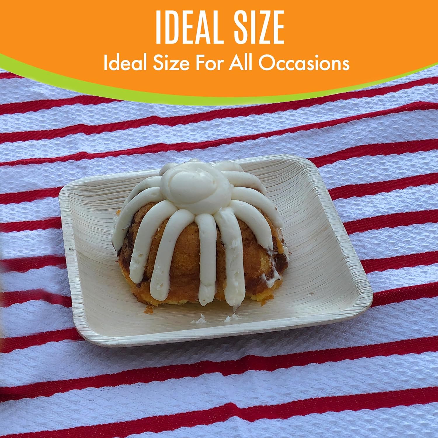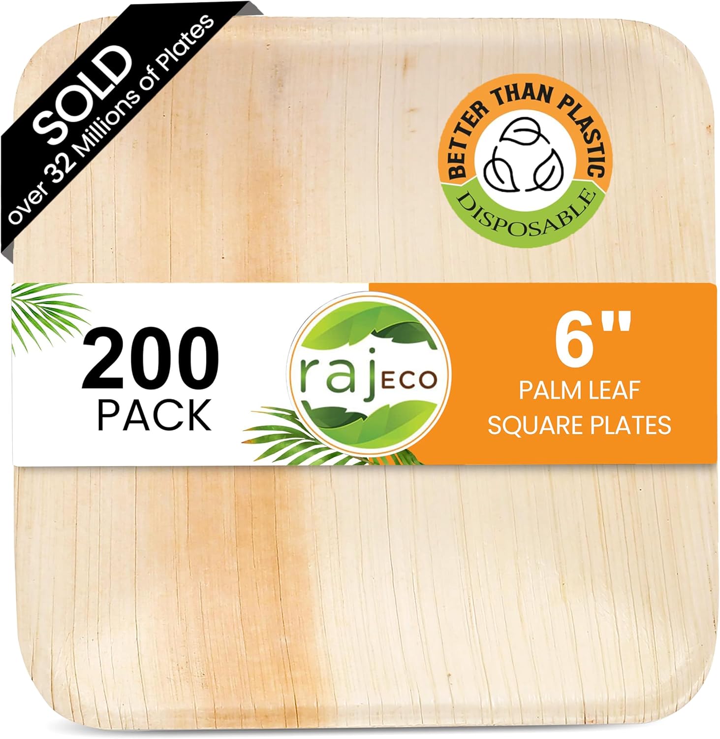 Raj Palm Leaf Plates [200-Pack] 6" Square Plates like Bamboo plates Disposable, Strong, Decorative Compostable Tableware for wedding, Lunch, Dinner, Birthday, Camping, Outdoor BBQ, Picnic