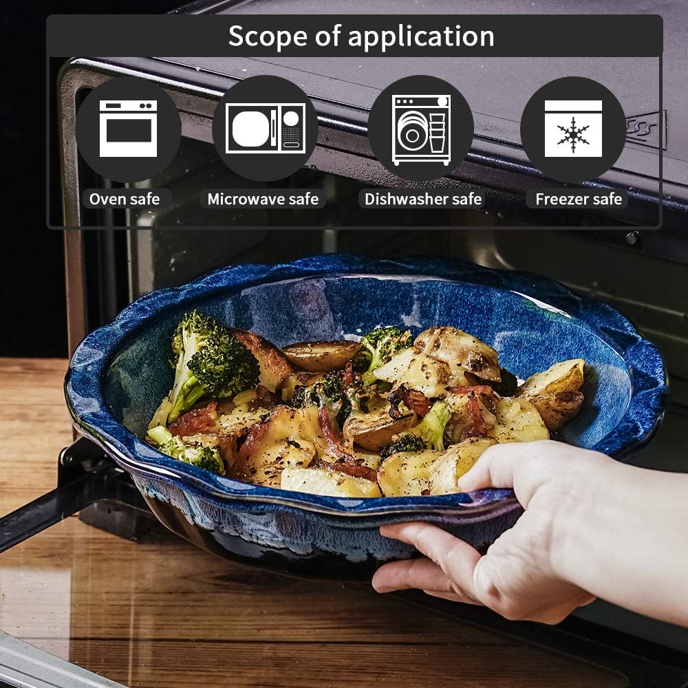 - ARTISTIC REACTIVE GLAZE: The KOOV deep dish pie pan features reactive glaze color for enjoyable baking time. Remarkable display can be a charming decoration even an artwork in your dining table and kitchen.