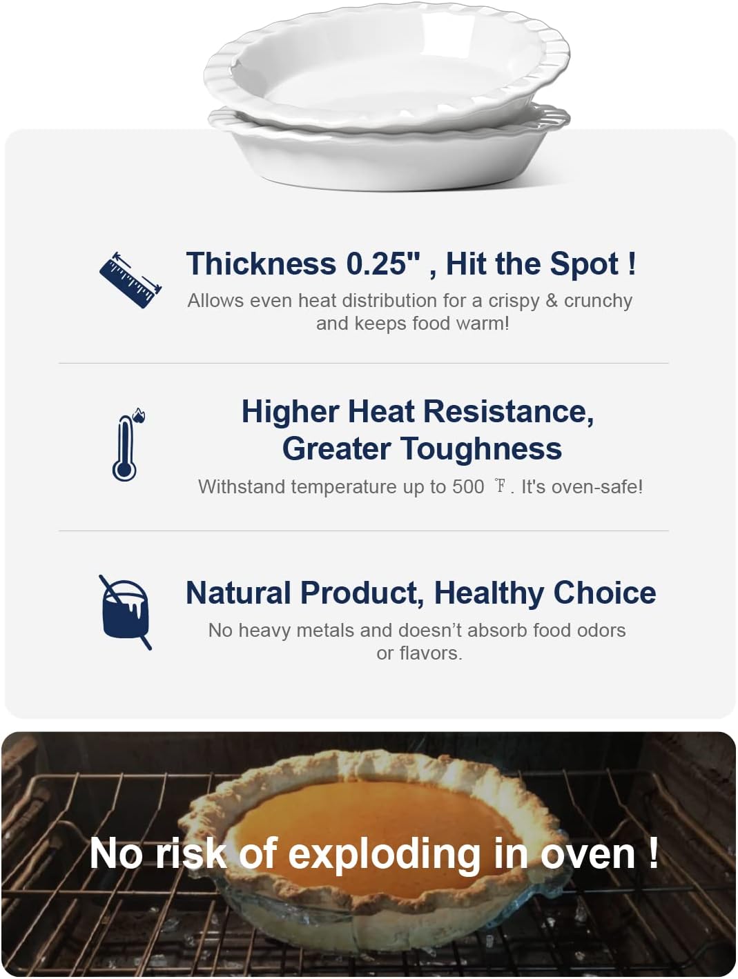 - A Versatile Dish You Worth It: 9 inch in diameter, 1.7-inch in height; Our fluted stoneware pie dish not just for home-made baking fruit pies, pot pies, crisps, quiches, but also fits the regular 9-inch pie crust bought in the grocery store; So you can save time preparing pie