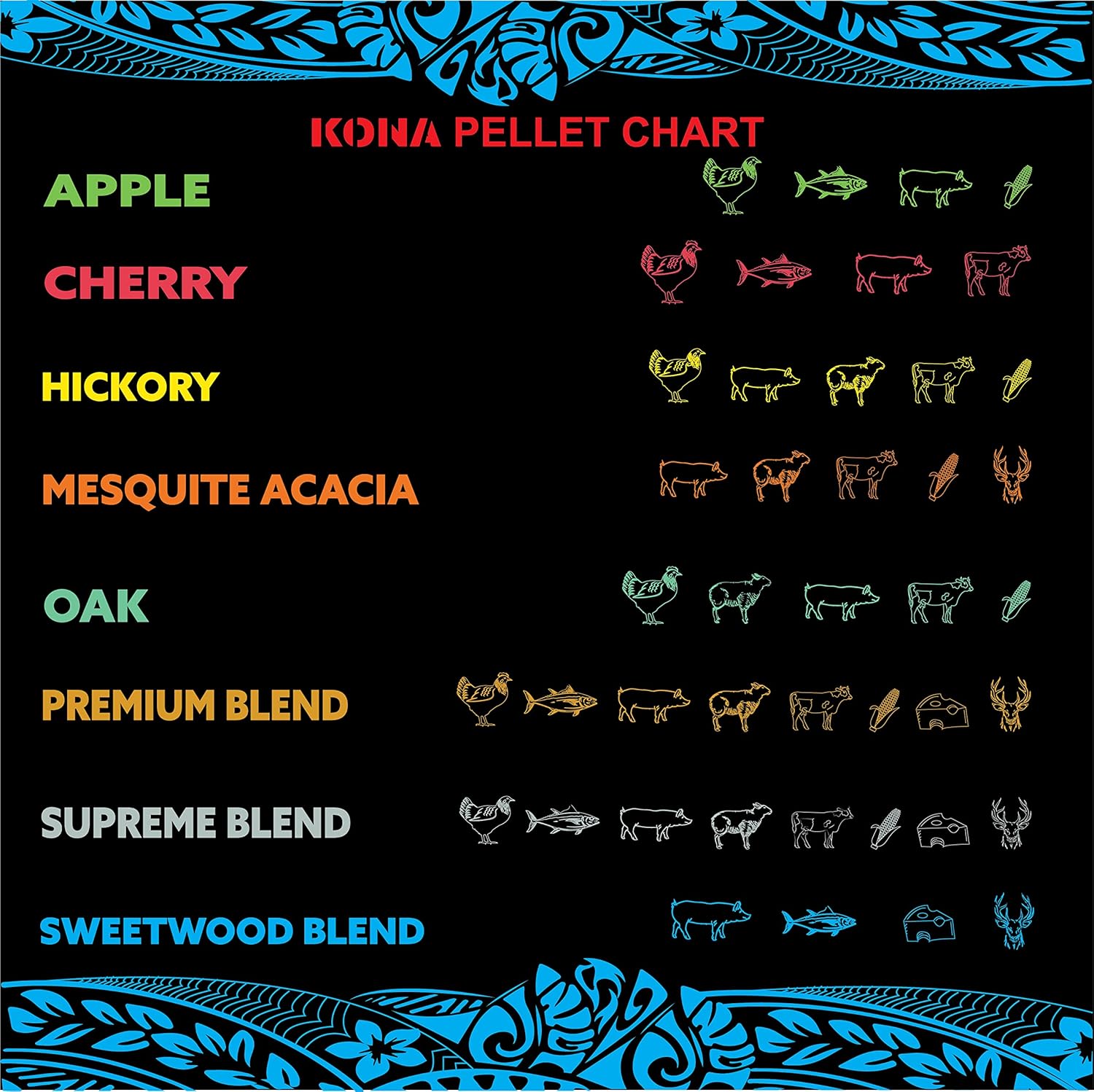 - AMAZING WOOD FIRED FLAVOR - Kona best BBQ smoking pellets variety pack provides an outstanding variety of flavors for an entire grilling season (80 uses). Only 1/3 to 1/2 cup is needed per use.
