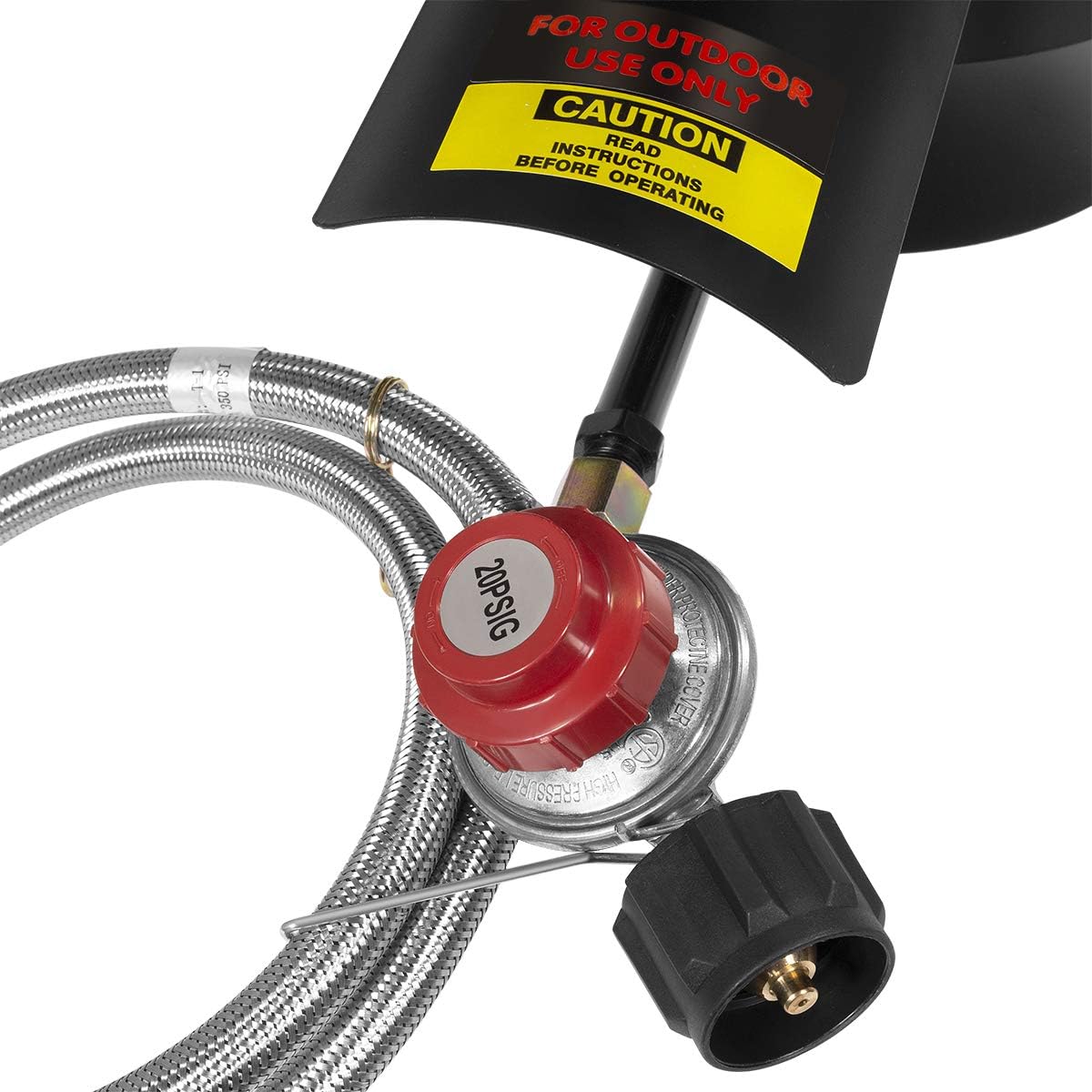 - Solid Frame - A solid foundation for your stock pot is important when you're frying outside. This kit features a round, black painted steel stand to make sure the hot contents stay inside where they belong. certificate on regulator and tube