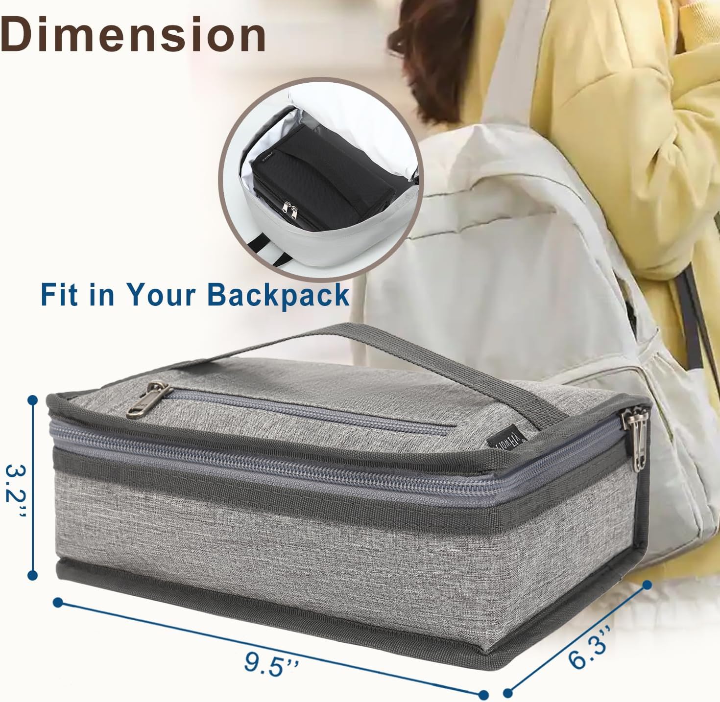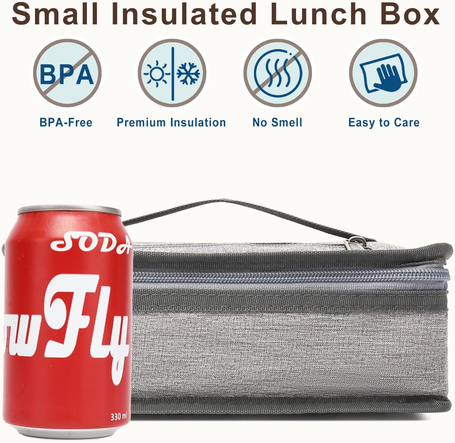 - โฟ Portable:Handle and could easy put into backpack or large handbag.Soft grip handles of Lunchbox is designed for convenient carrying, inner mesh pocket can separately stores ice pack and tableware. Easy to clean and dry, just wipe it with a wet cloth.