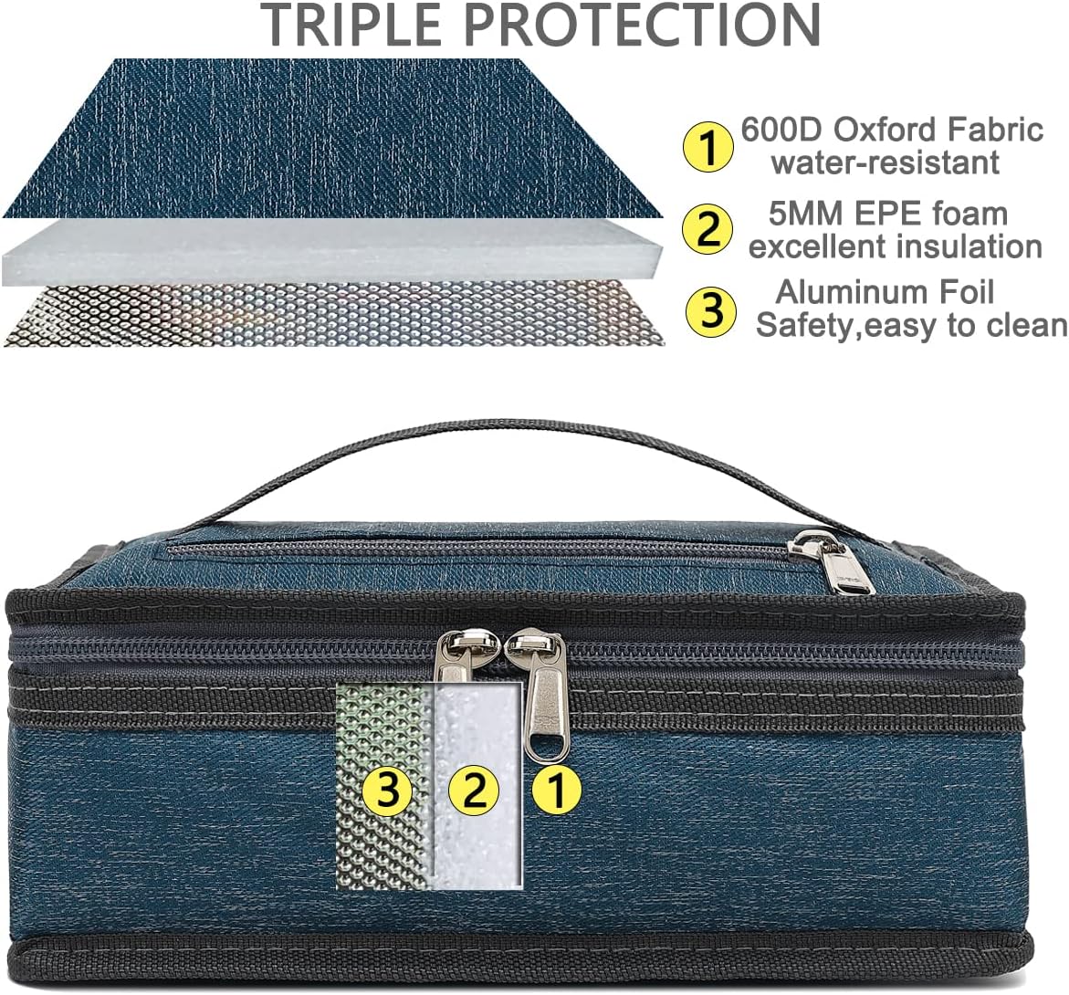 - โฟ Portable:Handle and could easy put into backpack or large handbag.Soft grip handles of Lunchbox is designed for convenient carrying, inner mesh pocket can separately stores ice pack and tableware. Easy to clean and dry, just wipe it with a wet cloth.