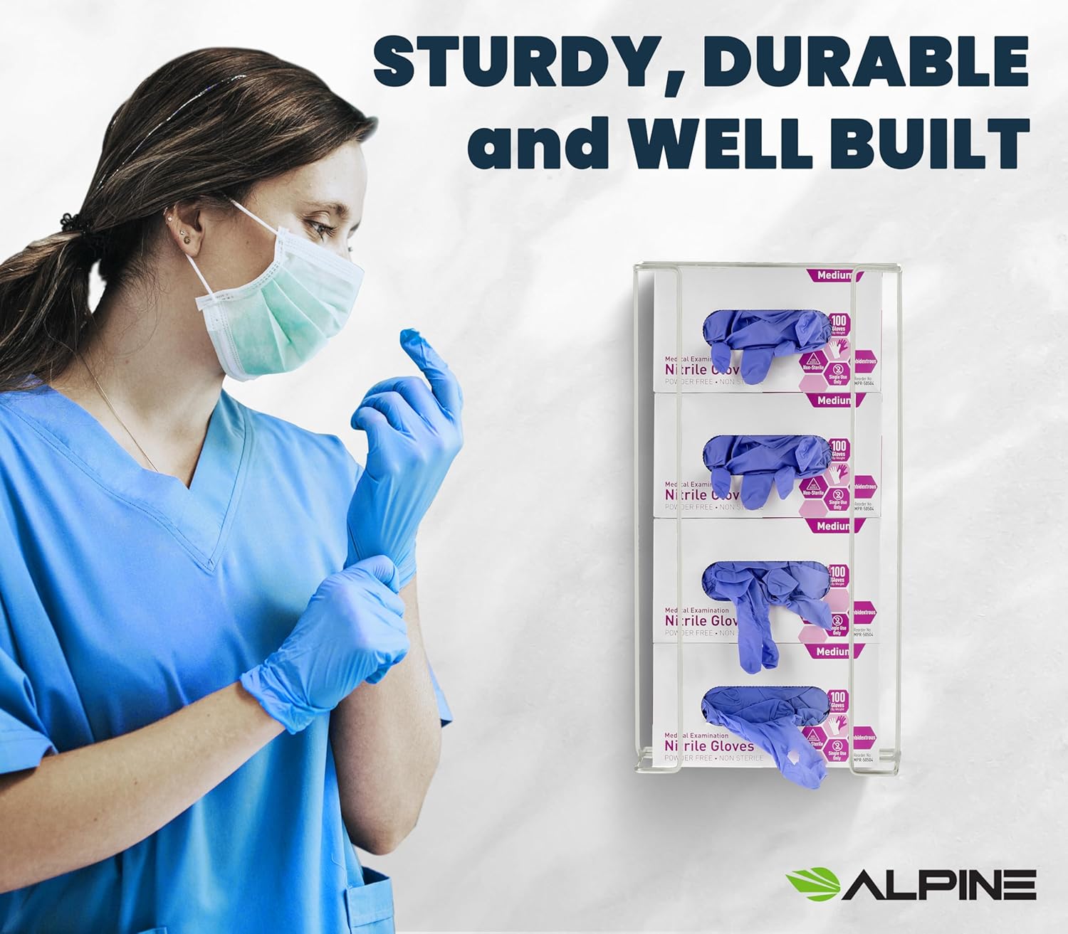 - COLOR OPTIONS. Accommodating two boxes of gloves, the Alpine Industries Dispenser is universally designed to fit most glove brands of medium size. The modern style dispenser is available in a white or black finish to appeal to everyoneโs taste.