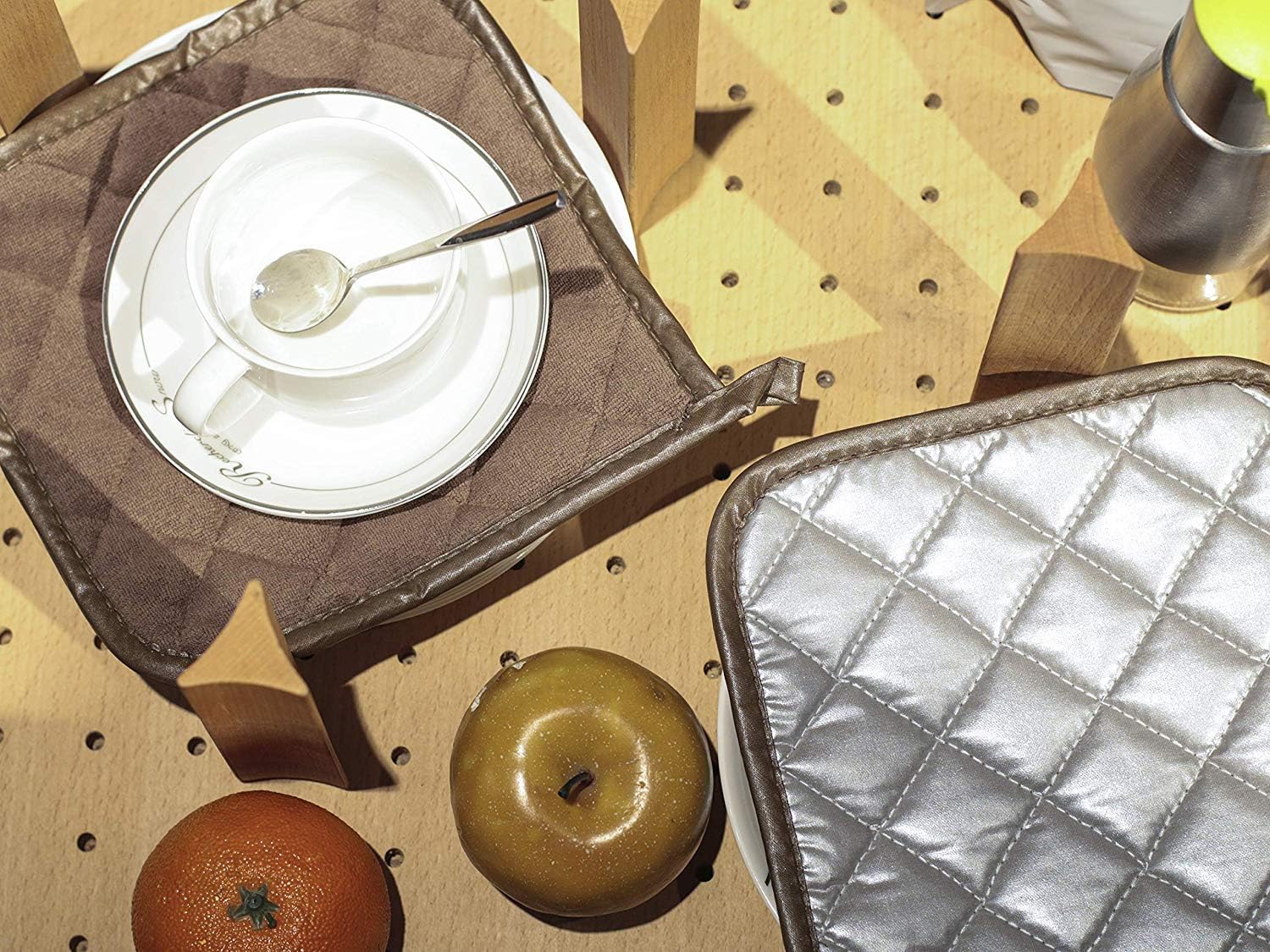 - PROTECT YOU FROM HEAT - The construction of these pot holders for kitchen helps to protect your hands and arms from the heat of the oven. Do not use pot holders in a hot oven or over an open flame.