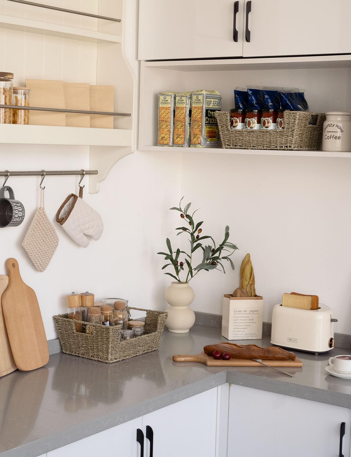 StorageWorks Wicker Storage Basket for Pantry Organizers and Storage, Stackable Seagrass Pantry Baskets for Shelves, 2-Pack