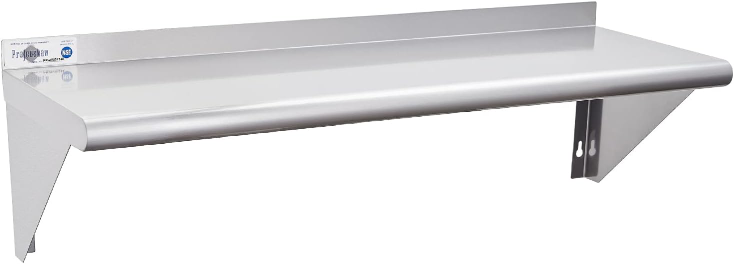 - Premium Stainless Steel: Made of 18 gauge Type 430 stainless steel, this wall mounted shelf is NSF certified to meet stringent public health standards and regulations. It is resistant to corrosion and rust, beautiful and practical, and durable. The food-grade stainless steel surface, is flat and smooth, which is easy to clean and sterilize