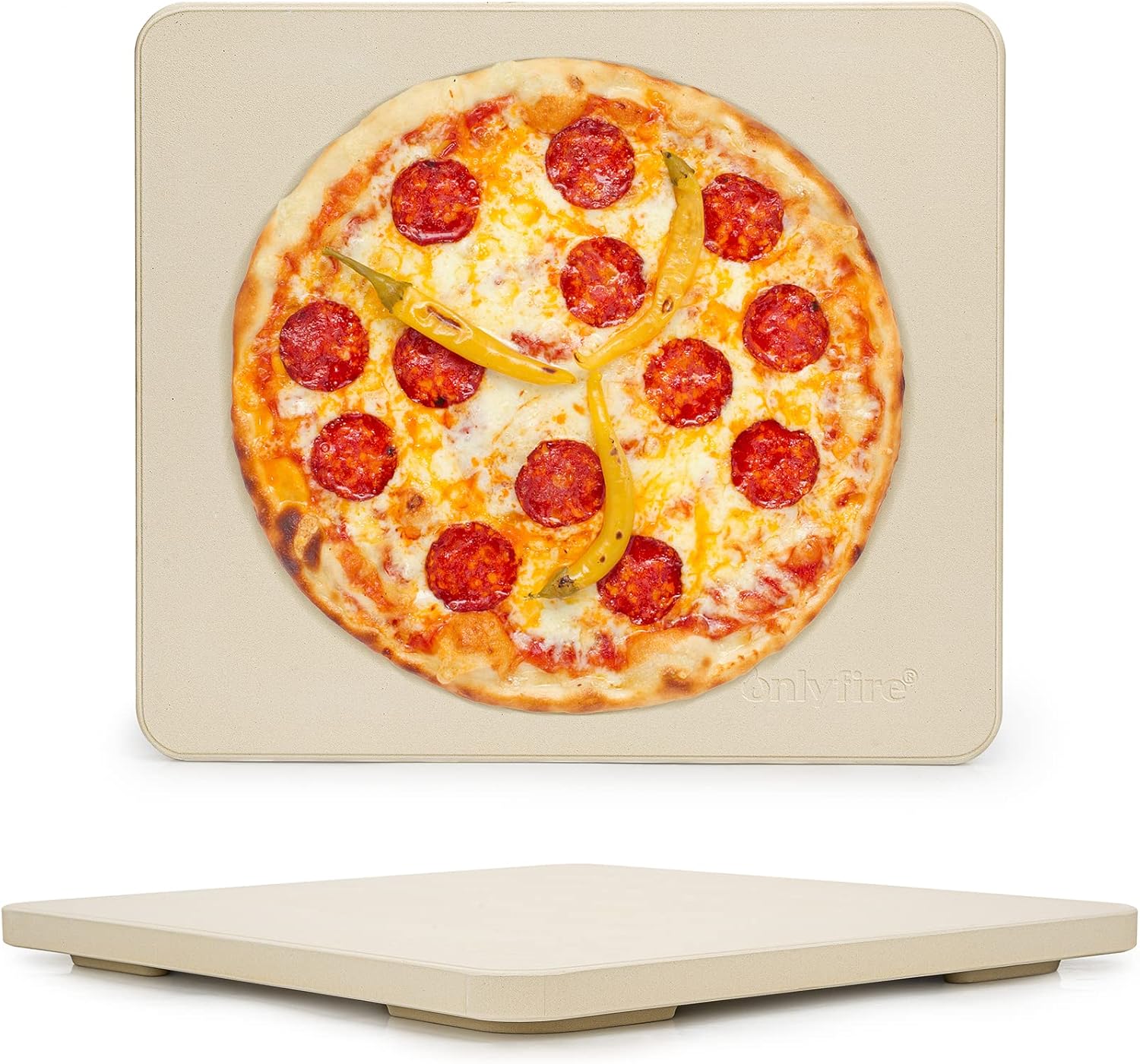 Onlyfire Pizza Stone for Oven BBQ and Grill, Thermal Shock Resistant, 14" x 16" Rectangular Large Bread Baking Stone, Heavy Duty Ceramic Baking Stone for Best Crispy Crust Pizza, Cookie and Cheese