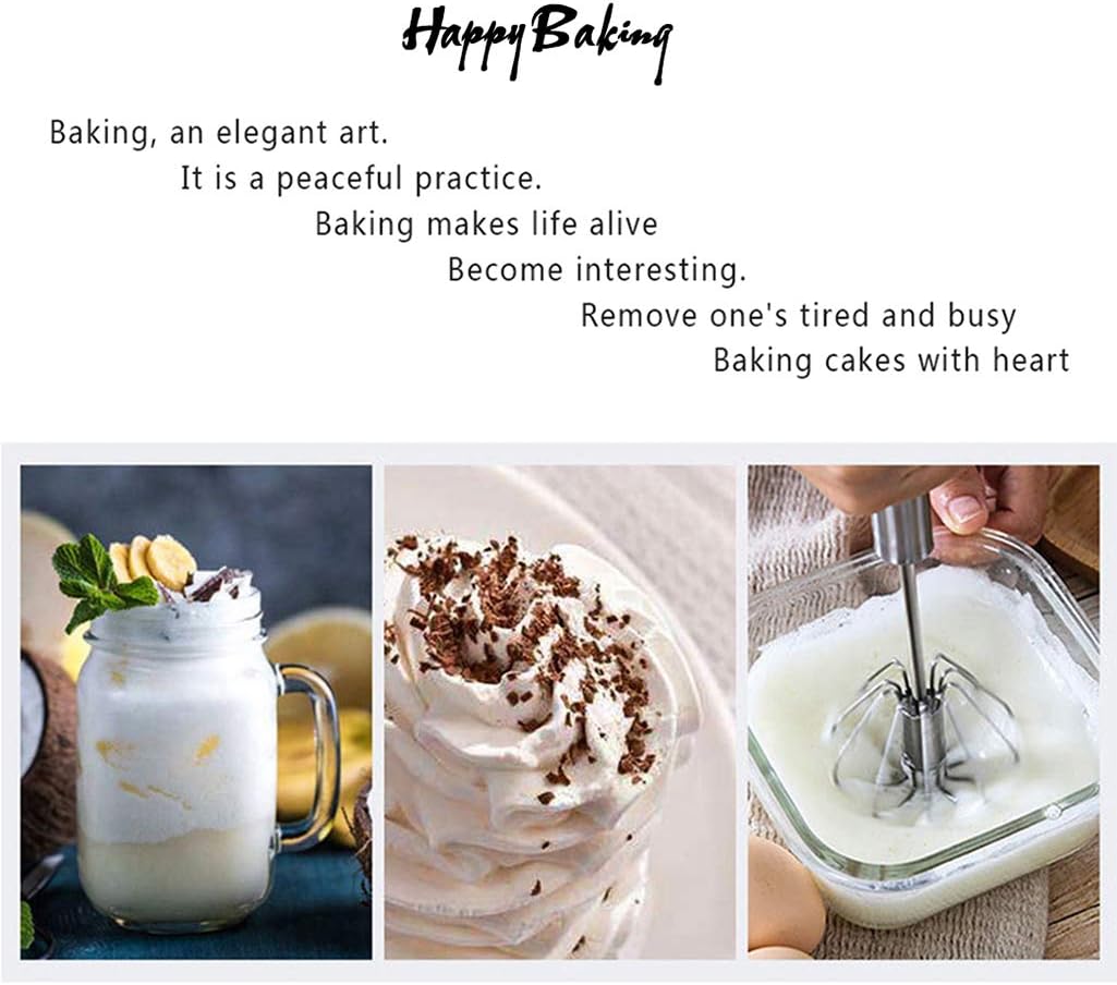- ★SEMI-AUTOMATIC DESIGN – The Semi Automatic Whisk adopts the SPRING DESIGN, adopts riveted structure, Unlike the unstable welded connection, the embedded rivet is more secure and long-lasting, Press it down and it can turn quickly, Experience the feeling of easy stirring,