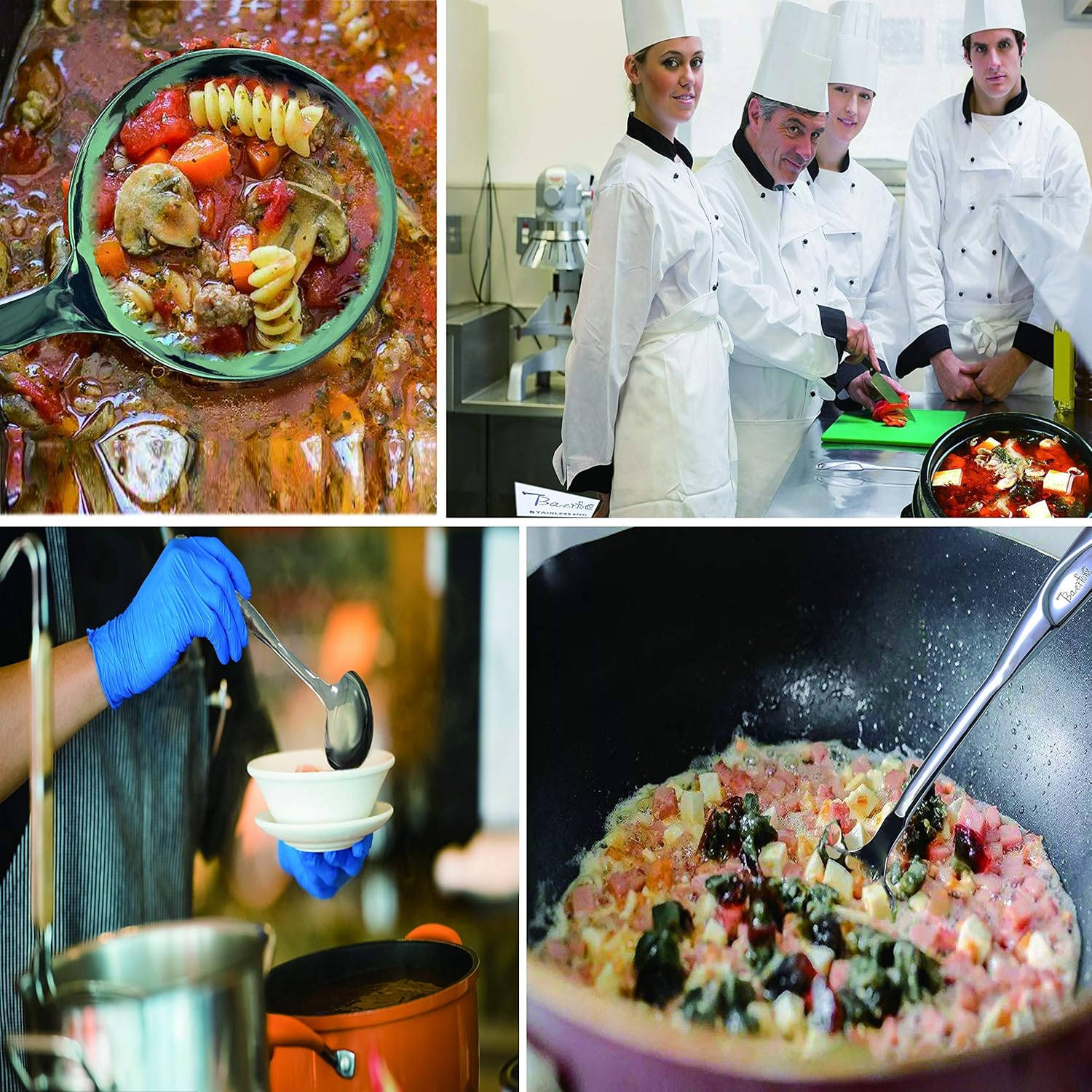 - 🍨【FOOD GRADE MATERIAL】: Before producing this stainless steel soup ladle, our designers carefully planned. Because the soup ladle will be in contact with food for a long time, the material we must use food-grade 18/10 stainless steel, which is processed, ground and polished several times to finally become mirror finish. Compared with other cooking spoons in the market, our soup spoons do not rust, rot, discolor or have no odor.