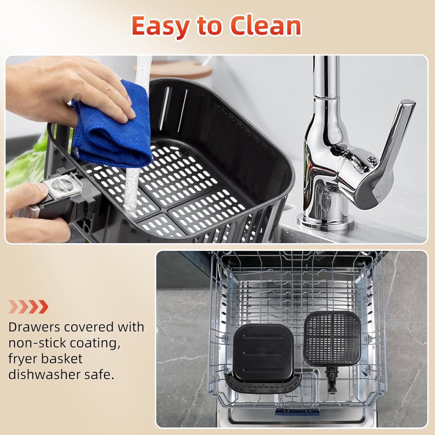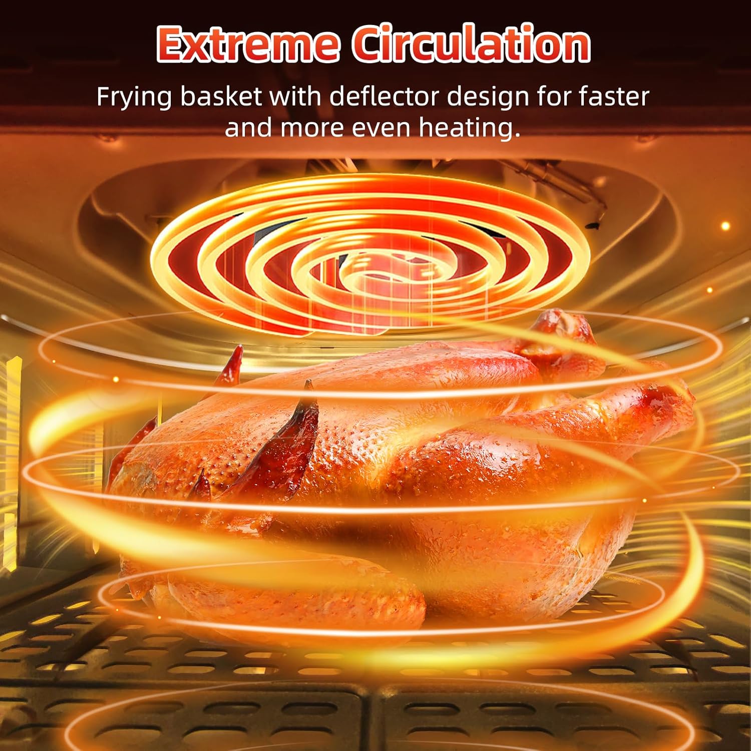 - 🍖🍞Safe Design & Stainless Steel Material: Auto-pause feature when fryer pot removed suddenly, auto shut off prevent overcooked, the cool-touch handle prevents burns. Air fryer is specially formulated and designed with a food grade 304, no chemical coating, PFOA-free & BPA Free.