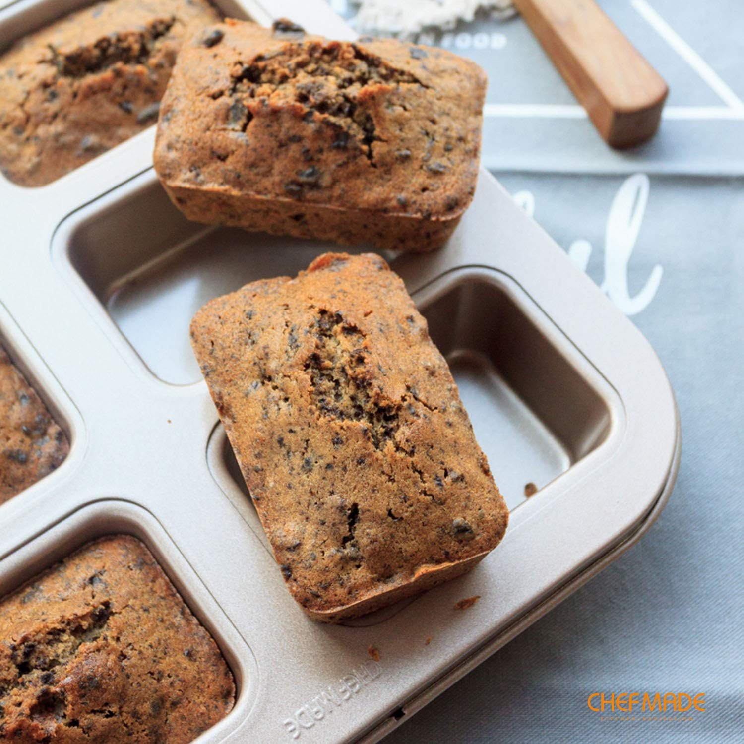 CHEFMADE Brownie Cake Pan, 8-Cavity Non-Stick Rectangle Muffin Pan Blondie Bakeware for Oven Baking (Champagne Gold)