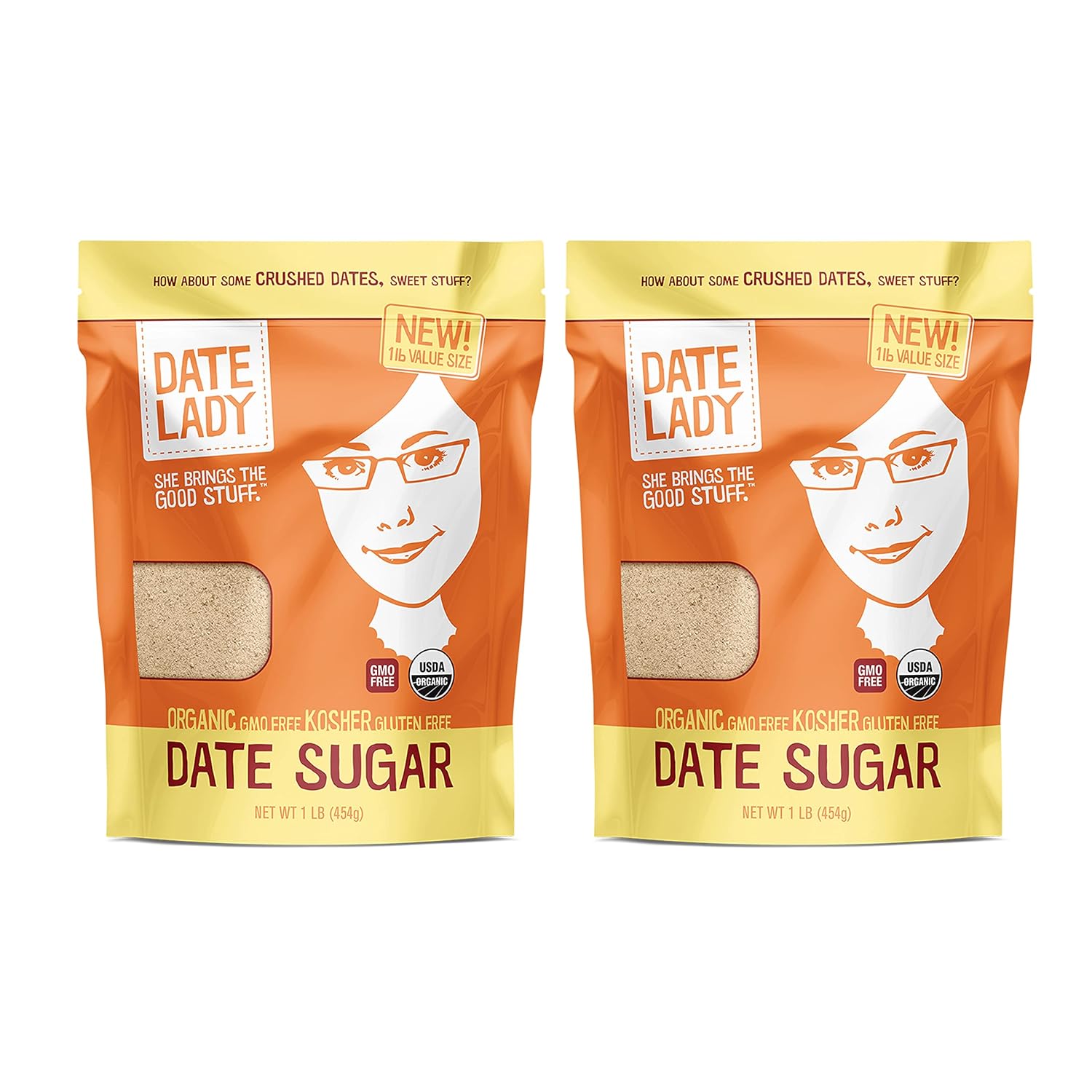 Date Lady Date Sugar, 1 lb, Organic | 100% Whole Food | Vegan, Paleo, Gluten-free & Kosher | Sugar Substitute and Alternative Sweetener for Baking | Will Not Dissolve in Your Coffee (2 Bags)