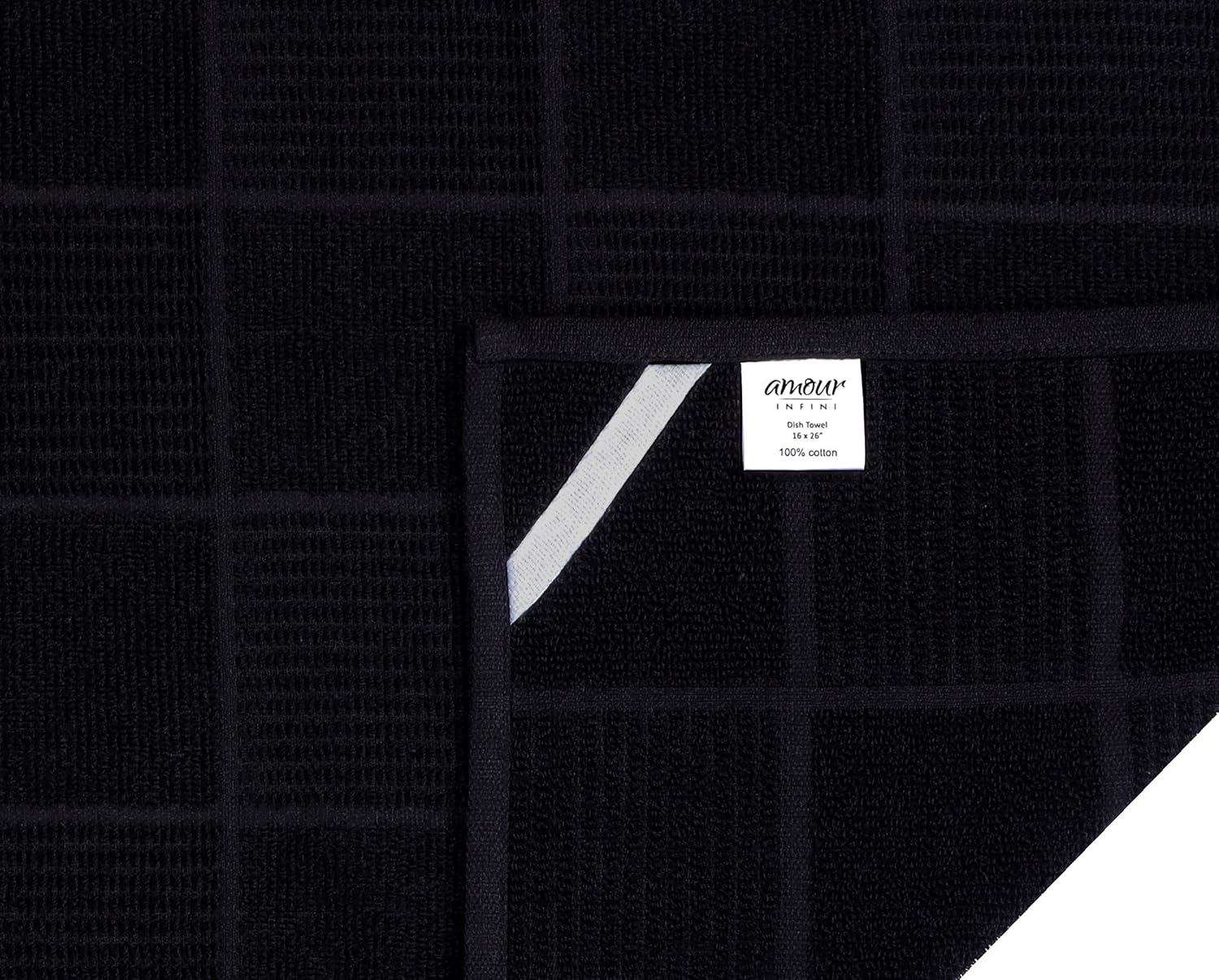 AMOUR INFINI Kitchen Towels Pack of 4 Absorbent, Quick Drying Premium Terry Cotton Dish Towel with Hanging Loop 16x28 Inch Hand & Tea Towels (Black)