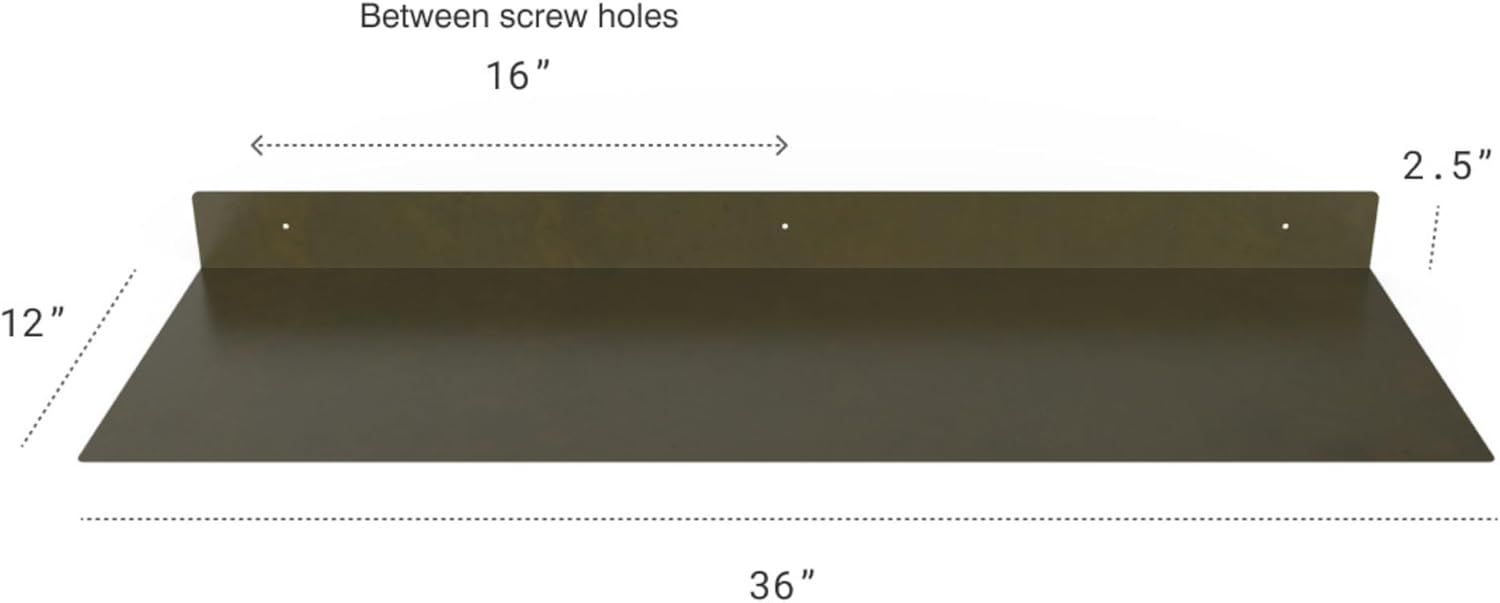 - DIMENSIONS & DETAILS: Measuring 36-inches long x 12-inches in depth, our steel floating shelf is made from 14 gauge raw steel. The weight of the shelf is 11 LBS. It's perfect for displaying books, plants, bottles, picture ledges, and retail displays