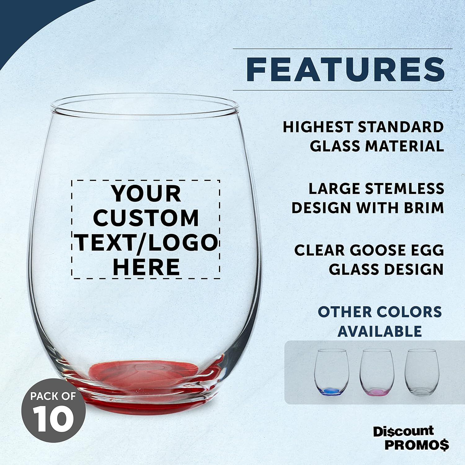 Custom Stemless Wine Glasses in Bulk by ARC Perfection, 15 oz, 10 pack, Personalized Text, Logo, Red or White Wine Glass Set, Red