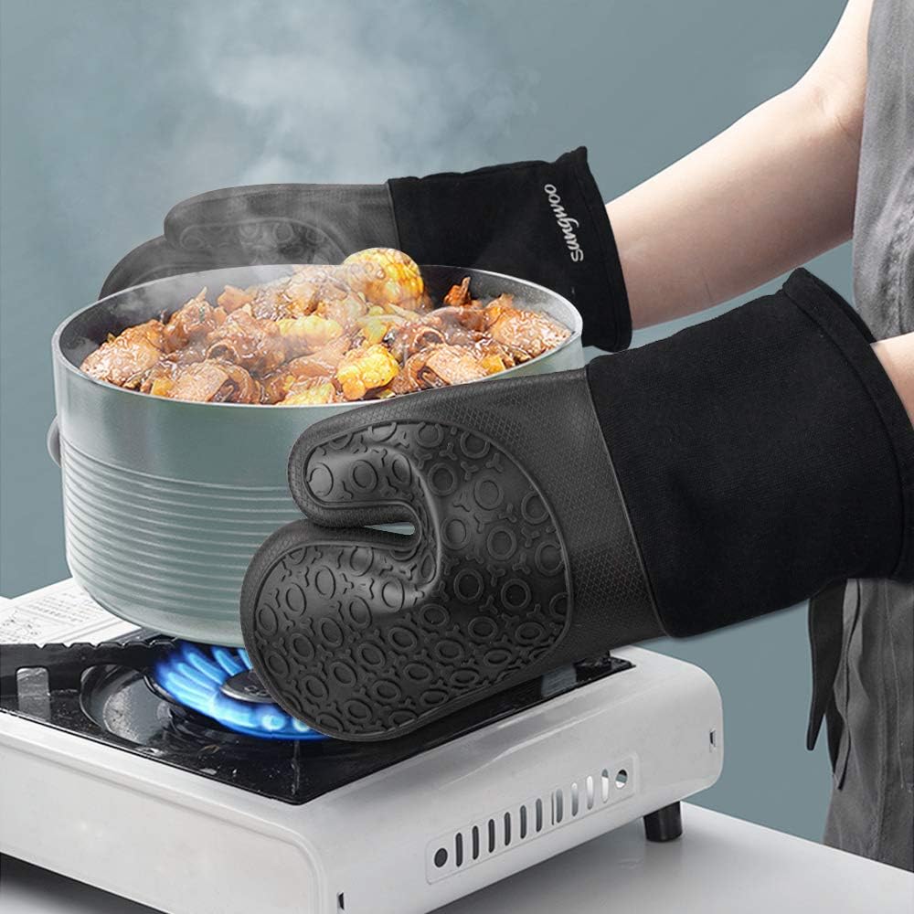 - Multiple Choices: Sungwoo Extra Long silicone oven mitts can be used as regular pot holders, dishwashing gloves. Also the oven mitts are ideal kitchen gift for baker, cooker.
