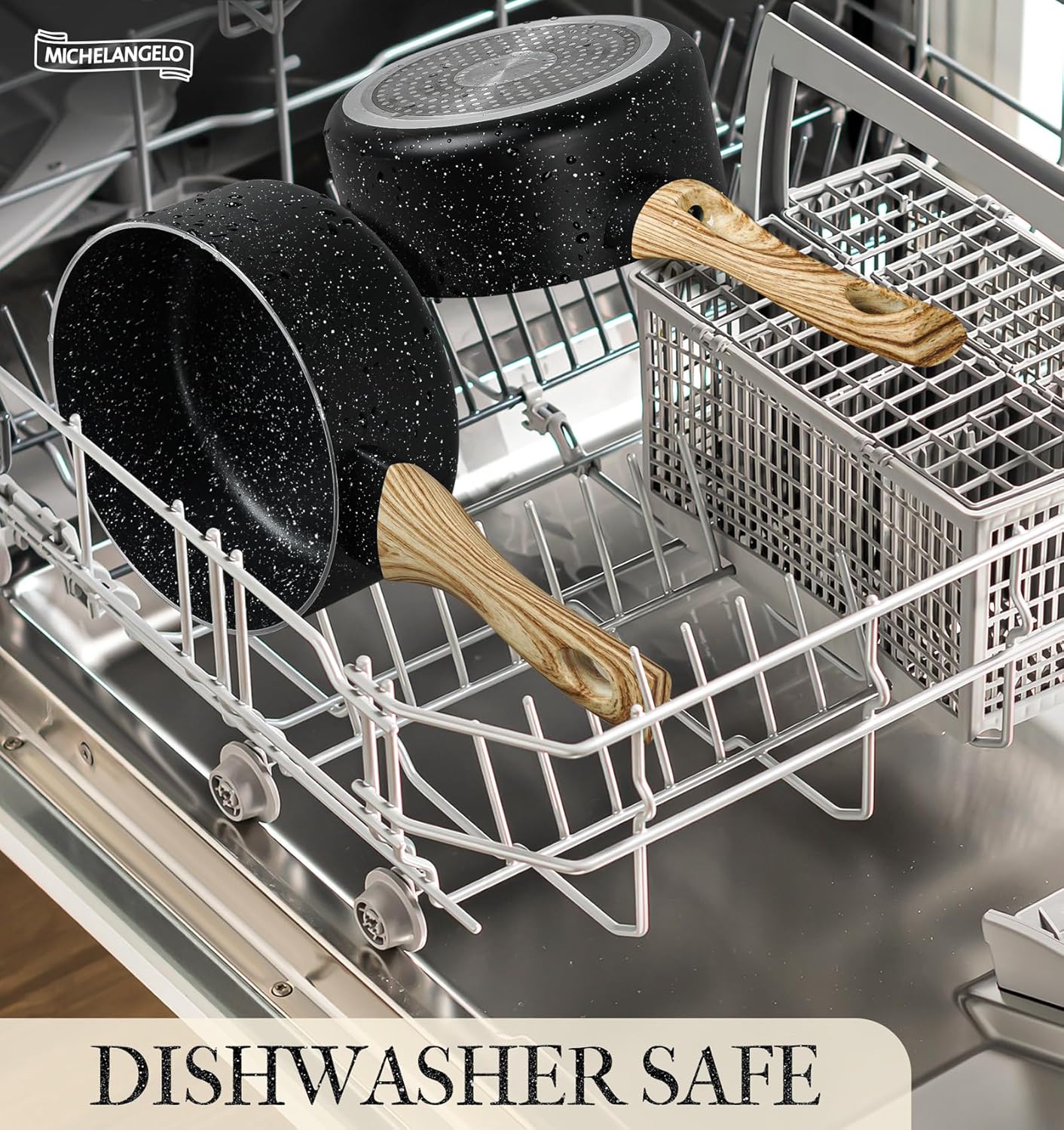 - 【Effortless Cleaning】The granite coating of this saucepan provides superior food release, which ensures effortless cleaning, so you can spend less time scrubbing and more time enjoying your meal.