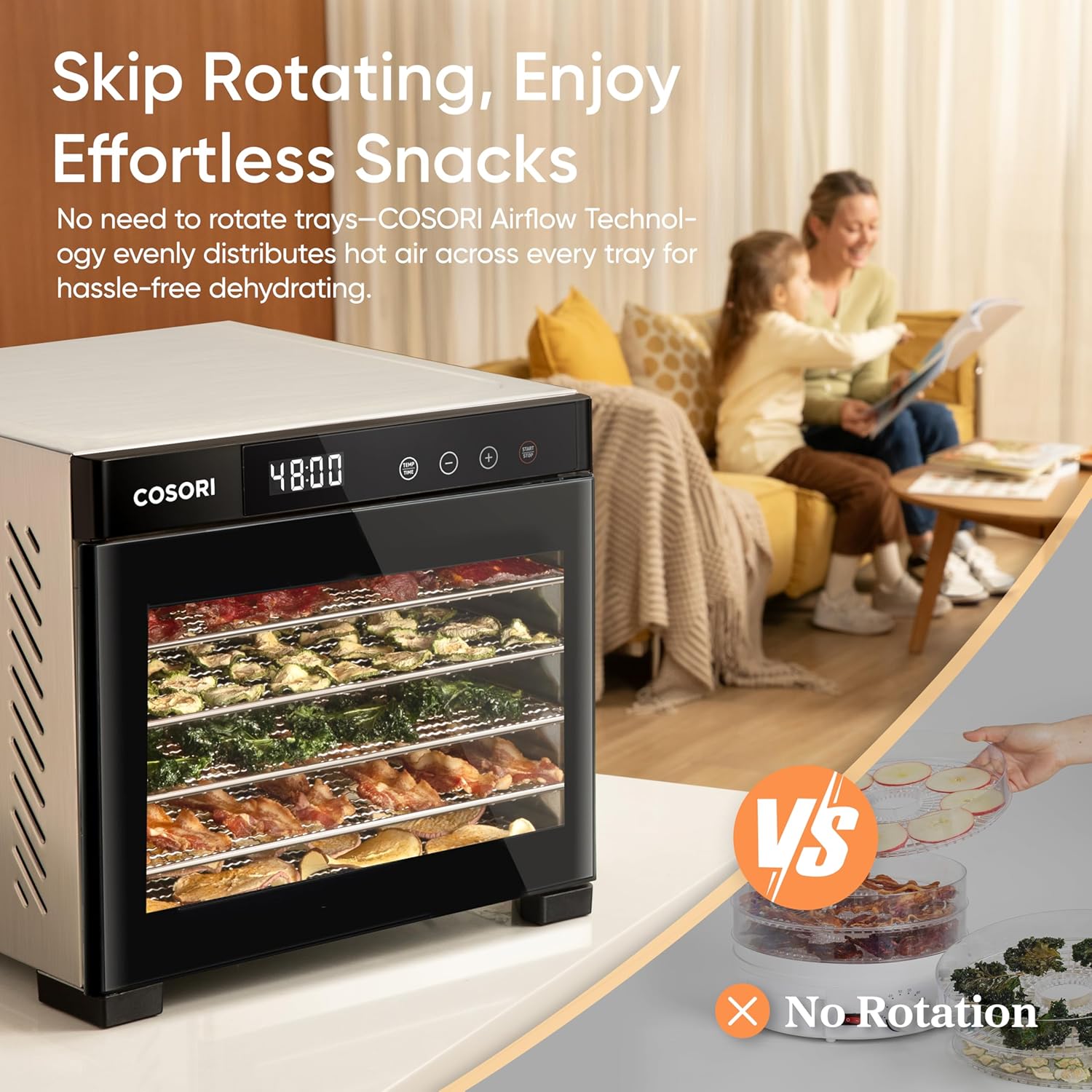 - π€π¨πππ§ ππ’π’πππ‘π: With noise levels less than 48 dB, it wonβt add unwanted noise to your kitchen, or disturb you if youβre dehydrating food overnight