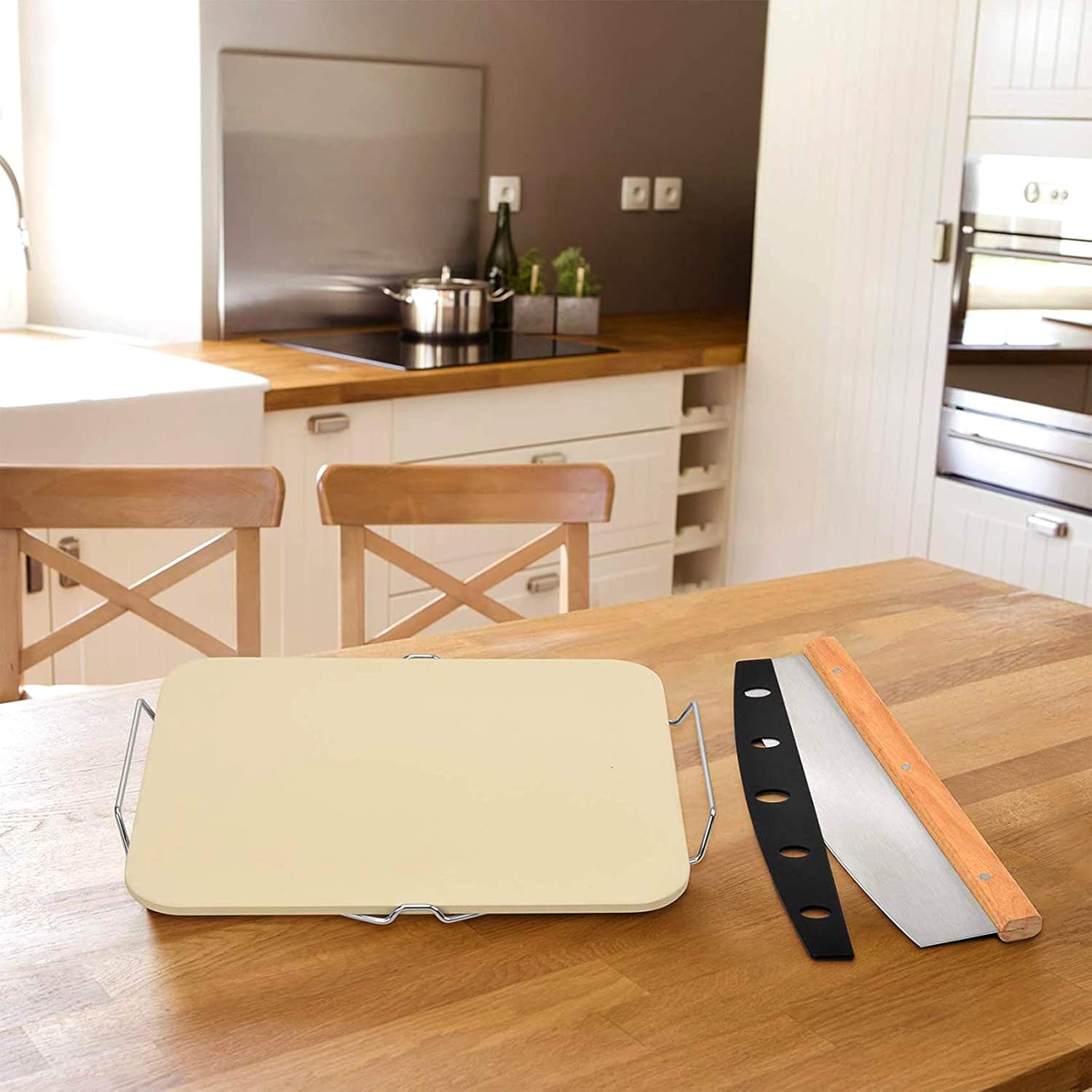 - 【Premium Accessories For All Pizza Oven】- Kits include one 15" x 12" rectangular pizza stone, one stainless steel pizza stone holder pan with handle, one pizza cutter with wooden grip and protective cover.
